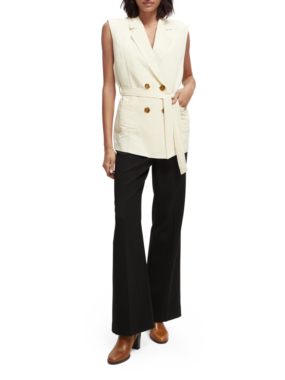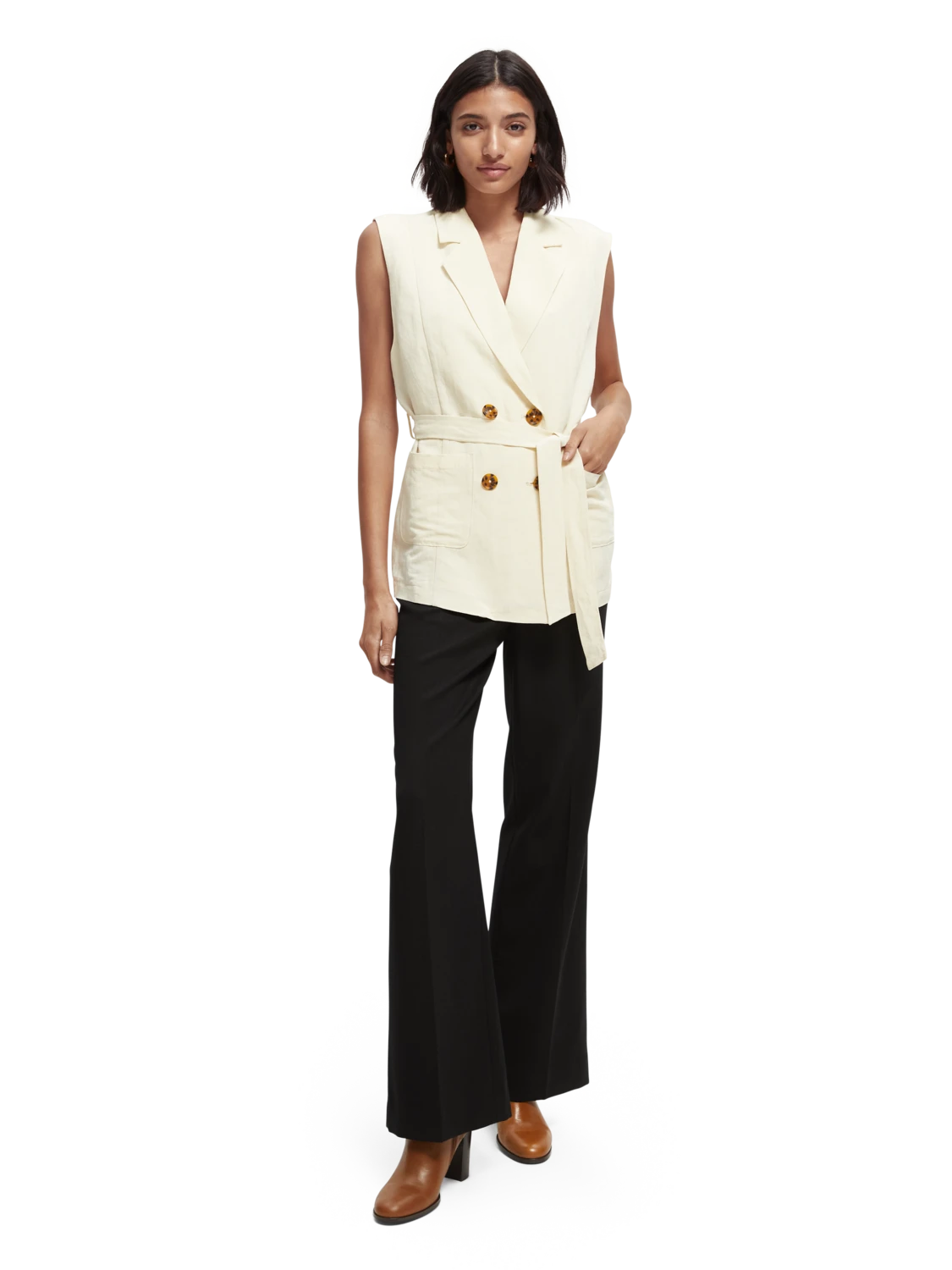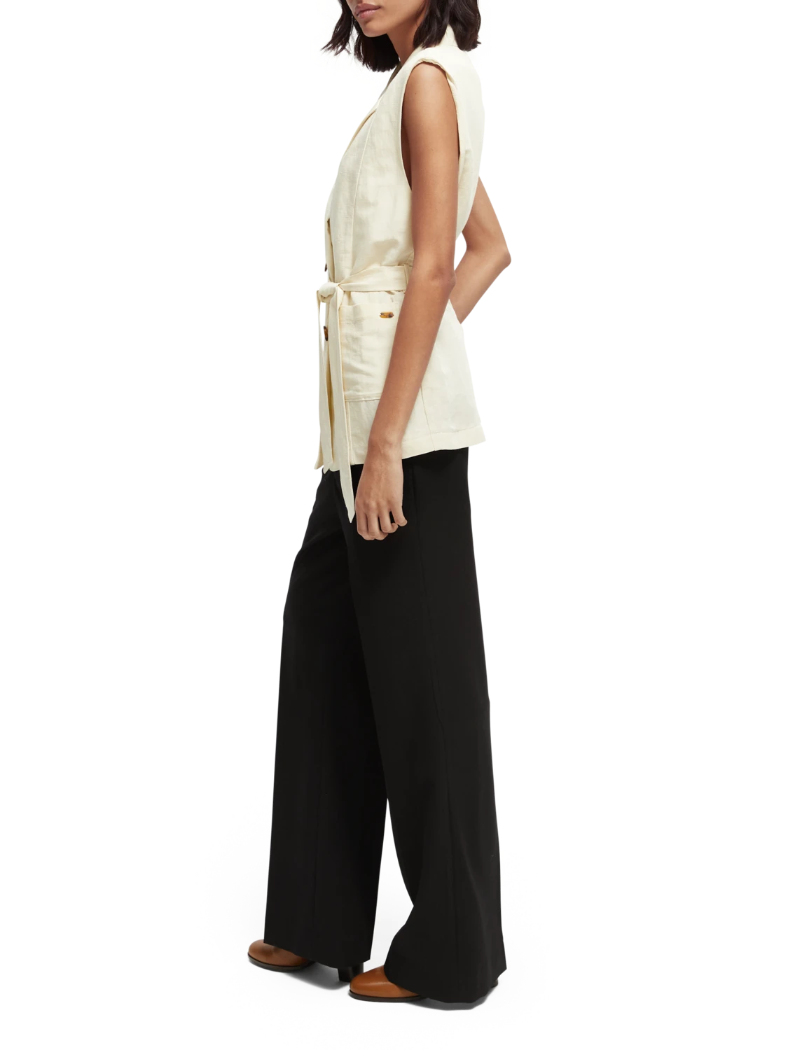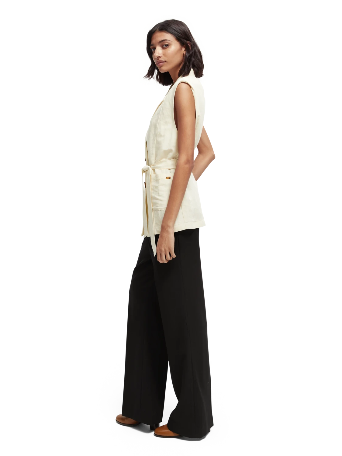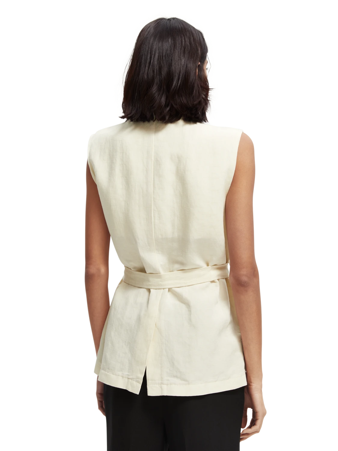This gilet adds a contemporary yet versatile choice to any collection. With its classic double-breasted design and matching belt, pair this gilet with most jeans or chinos from our collection to quickly uplift your day-to-day style. Made from a lightweight linen (50%) blended material for every-day comfort – fabric composition on care label and listed under highlights & care.