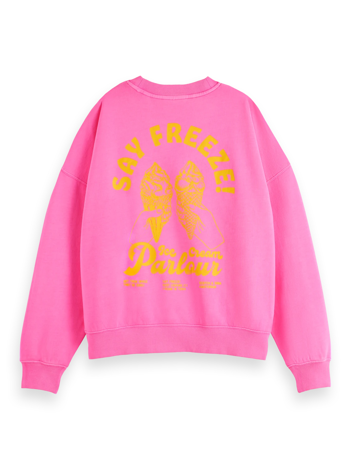 The Boyfriend Fit Garment Dye Sweatshirt is both stylish and comfortable. The oversized fit allows for a relaxed, effortless look while the garment dye adds a touch of vintage charm. Wear it with your favorite jeans for a quintessential Scotch & Soda look.