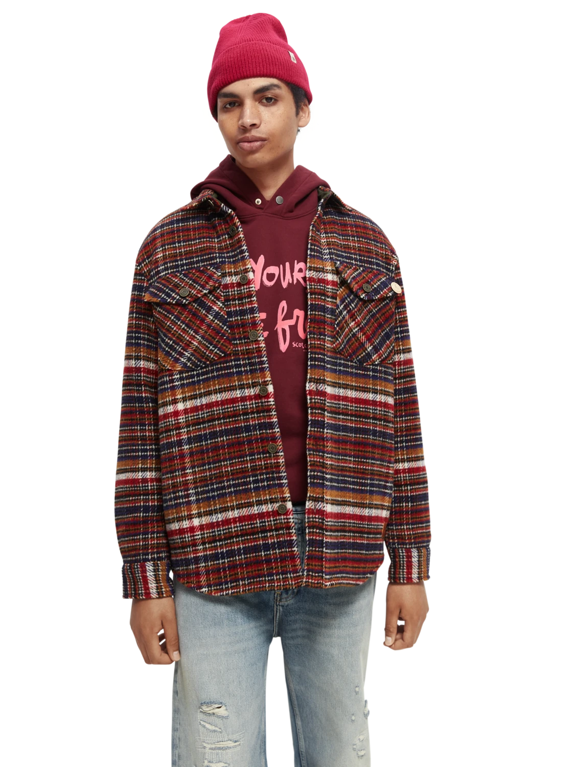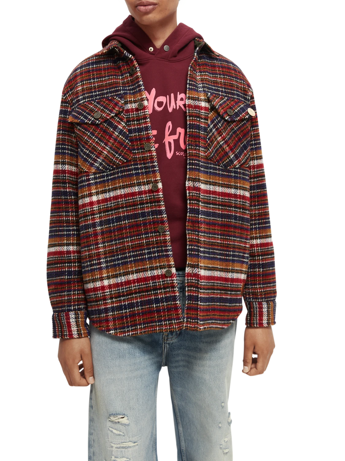 Our latest take on the classic wool-blended (52% wool) checked overshirt with a full button closure. This versatile piece comes equipped with two chest pockets to carry your essentials.