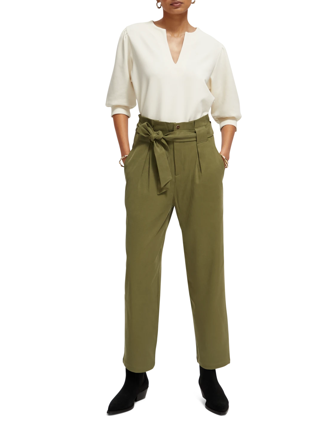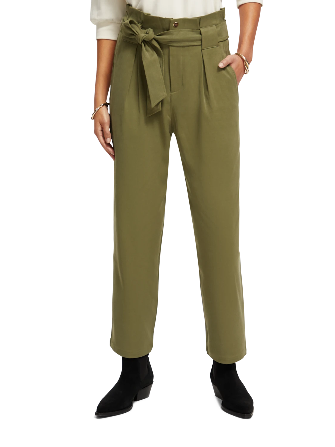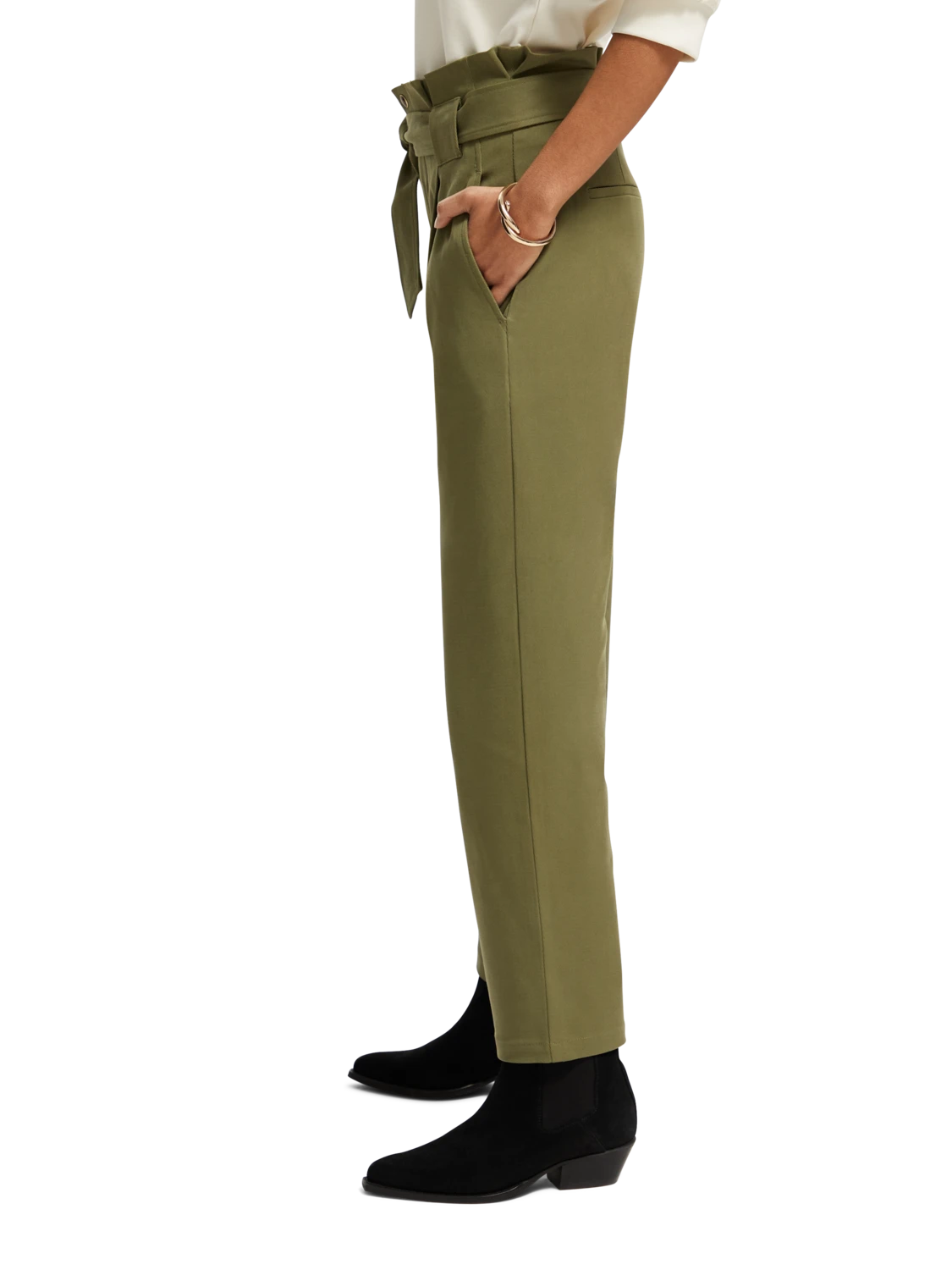 The Daisy comes with the popular paper bag fit. These belted trousers sit high on the waist with a more relaxed feel across the thigh, and a straight leg that stops at the ankle.
