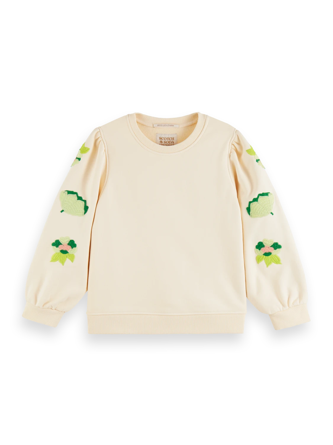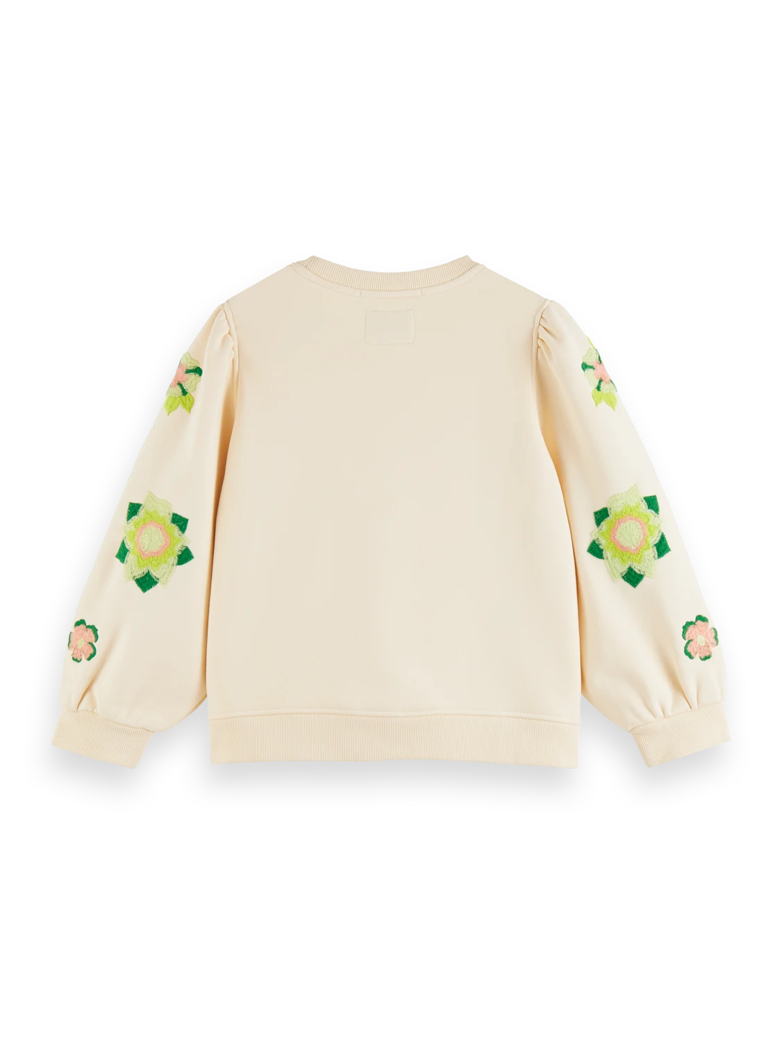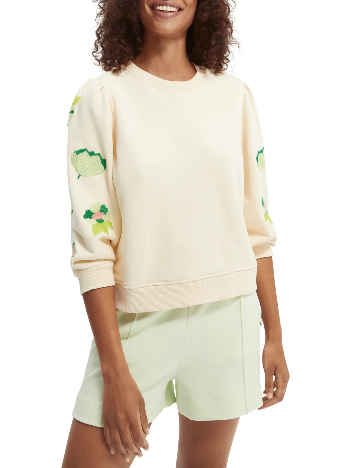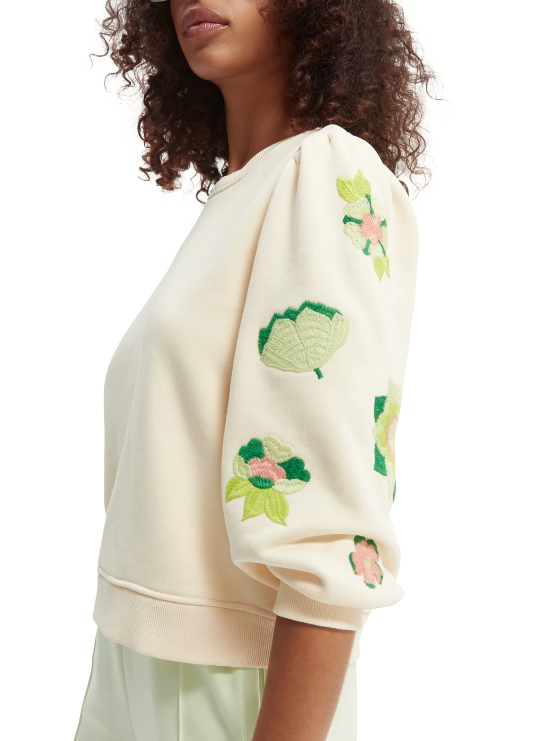 With floral embroidery along the sleeves, this crewneck sweatshirt is the perfect layering piece. Cut from a cotton-blend and featuring ribbed cuffs and a ribbed hem, this top will keep you warm on chilly spring days.