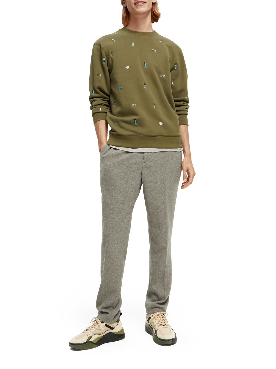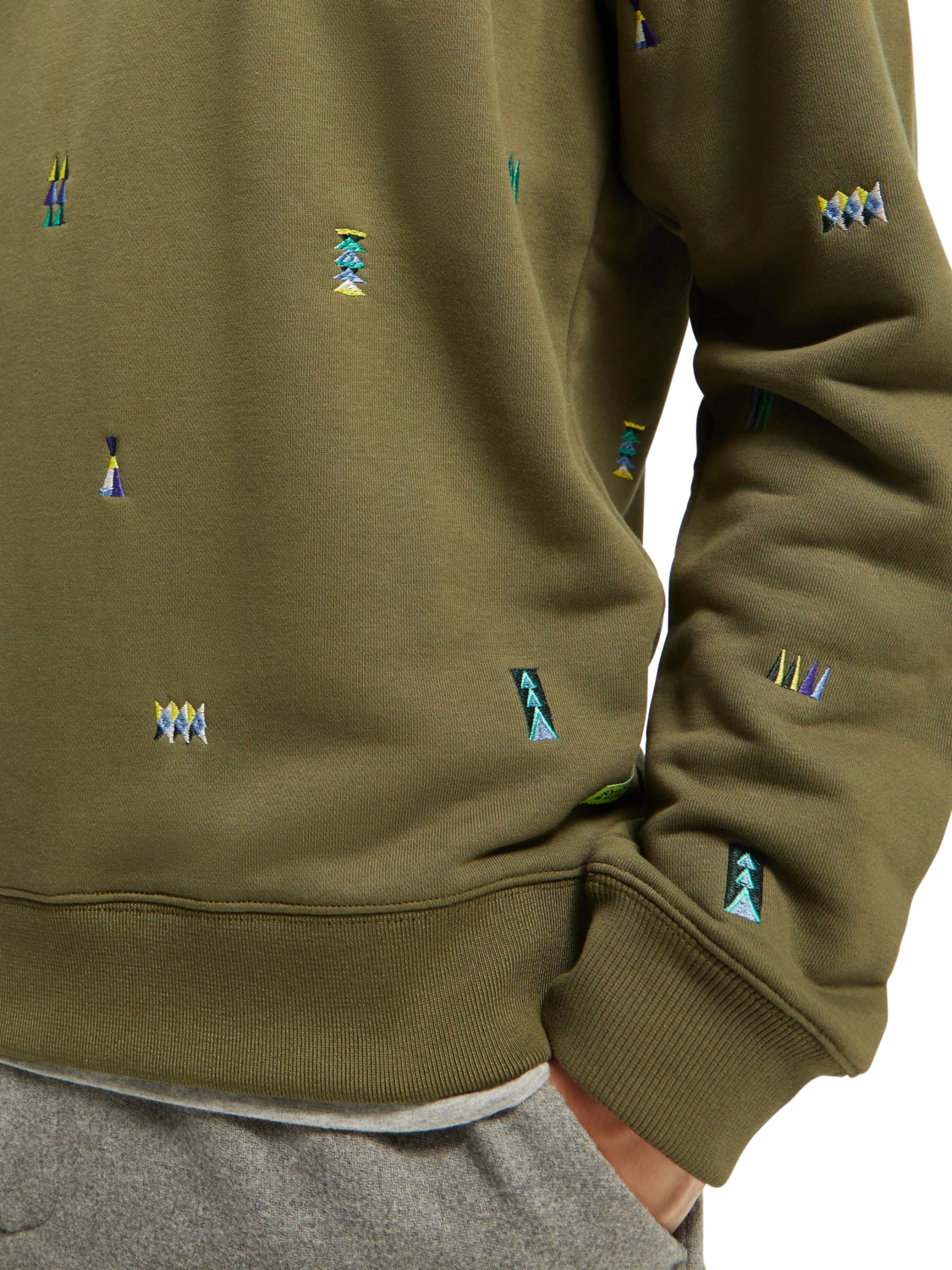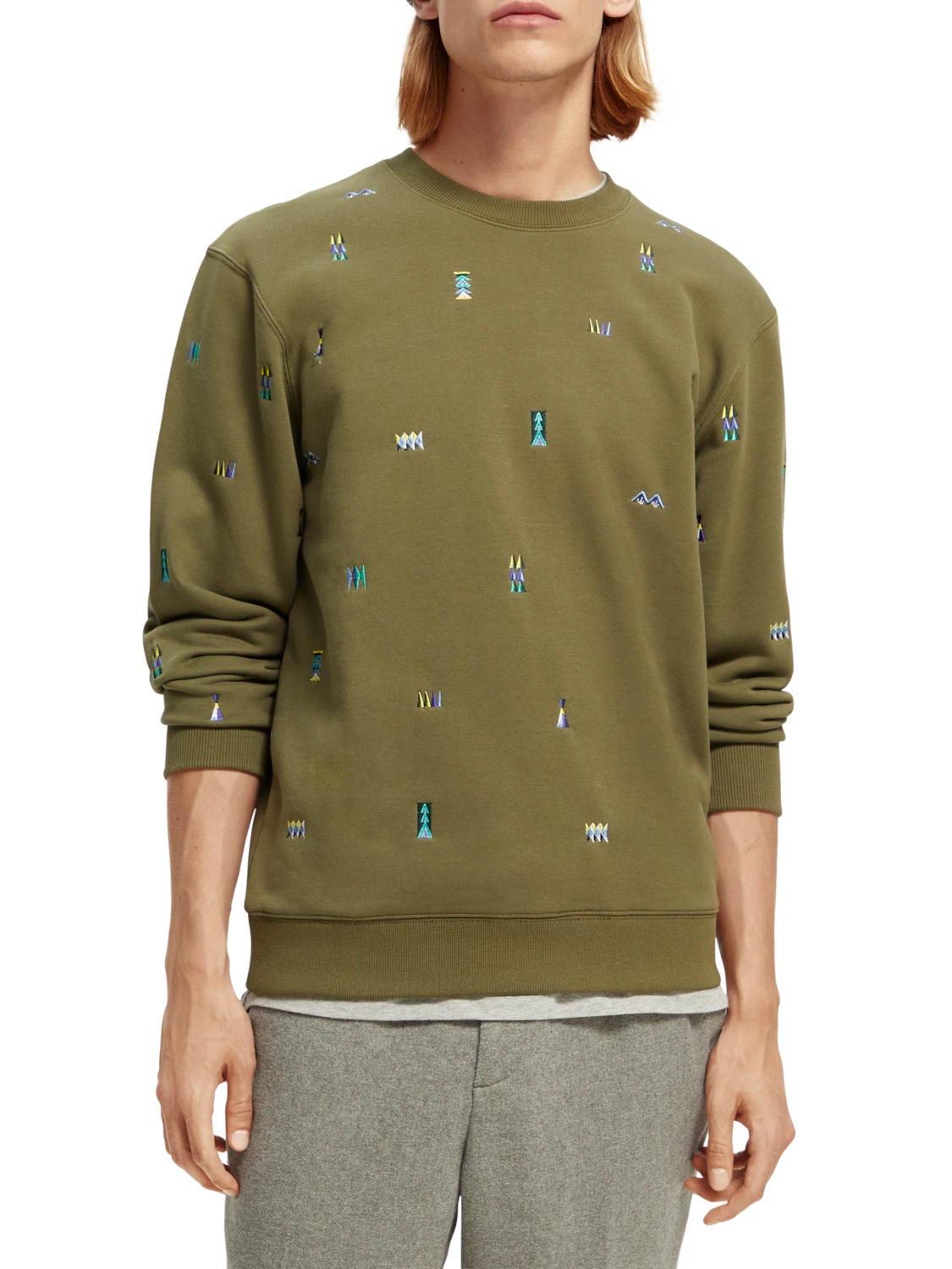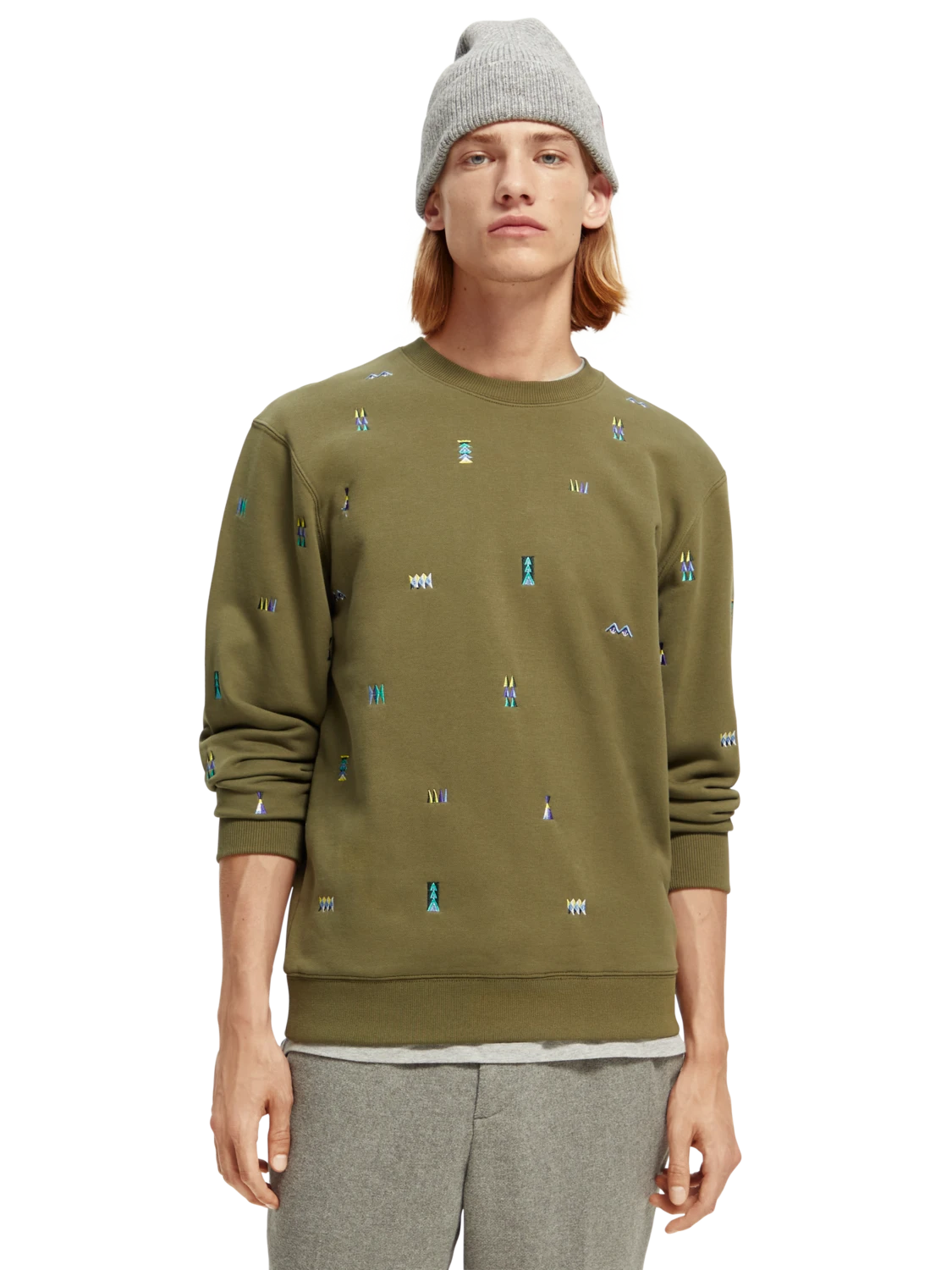 The crewneck sweatshirt is a favourite in any collection. Featuring all-over embroidery detailing with a ribbed hem and cuff – this style supplies comfort and warmth for day-to-day wear.