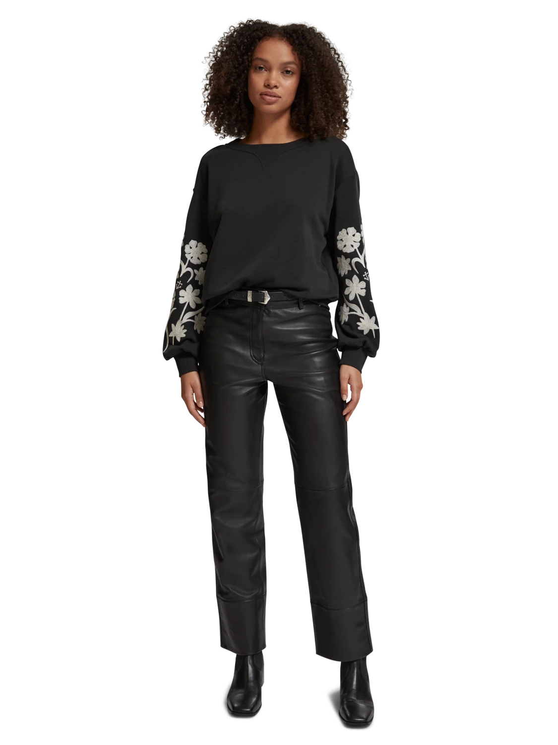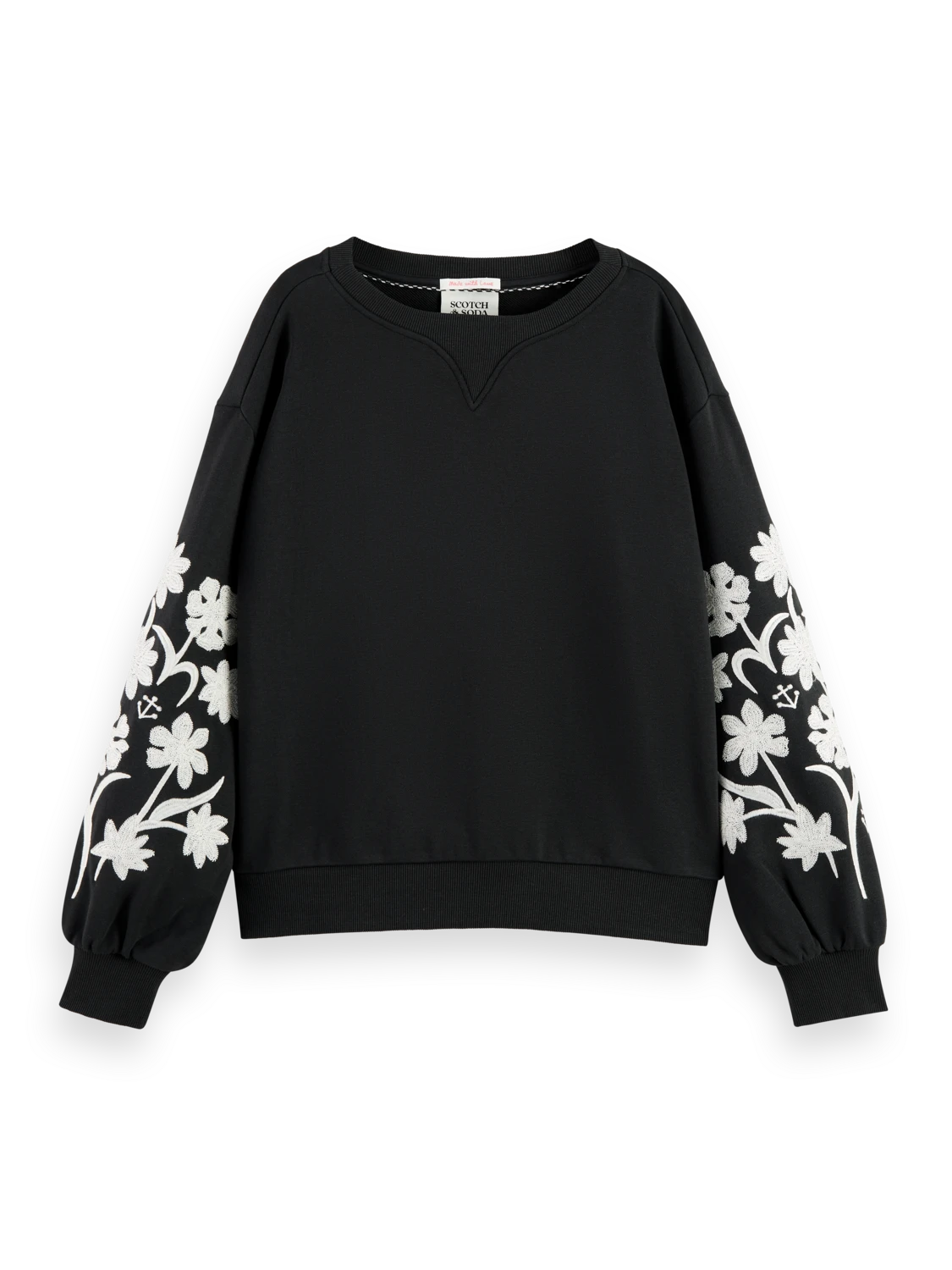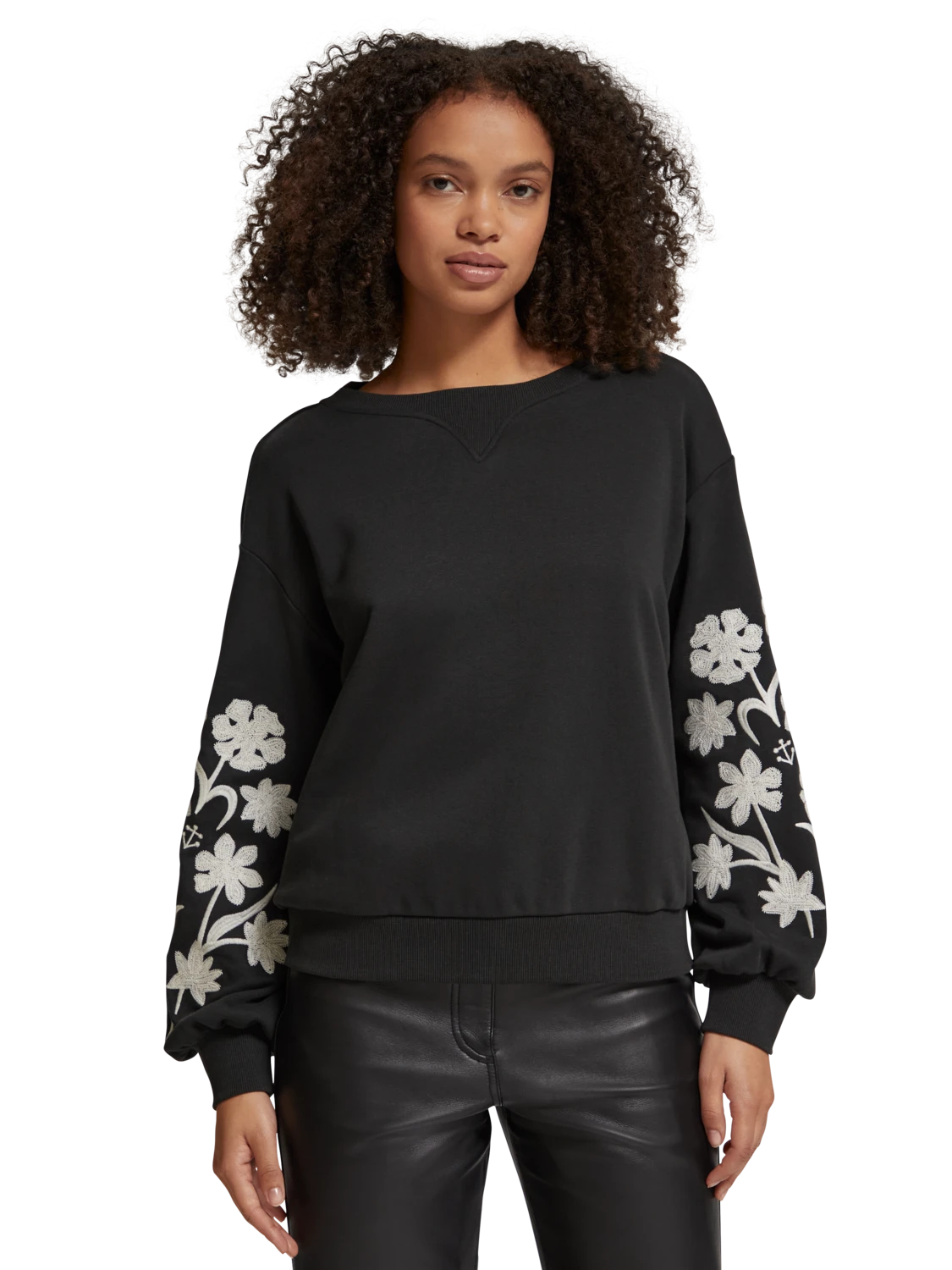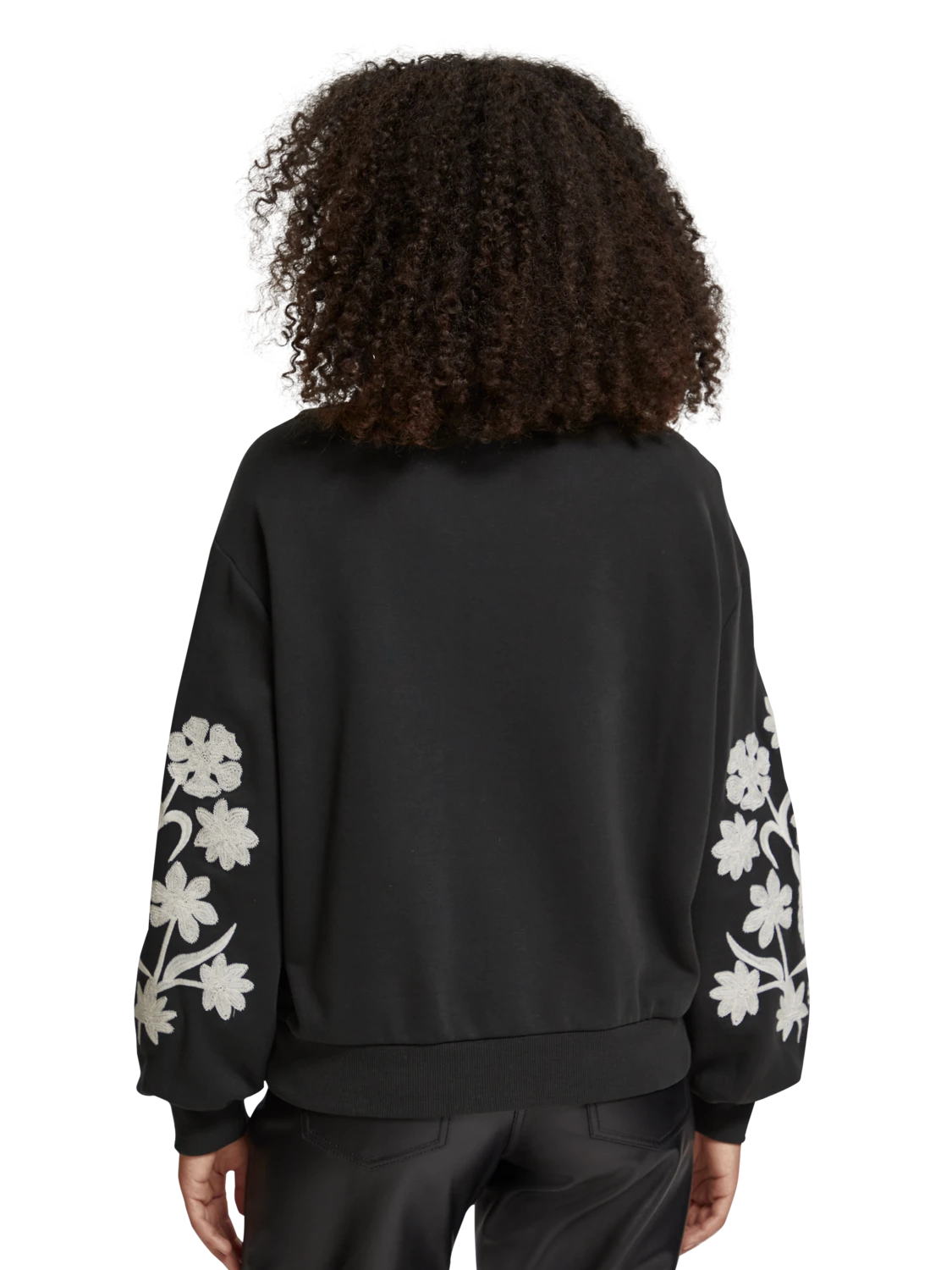 Embrace the art of embroidery with this embroidered sleeve sweatshirt. The intricate embroidery on the sleeves adds a touch of whimsy and individuality to this cozy staple. Made with attention to detail, this sweatshirt seamlessly combines comfort and style. Whether you’re rocking it with jeans or leggings, this piece adds an artistic flair to your everyday look.