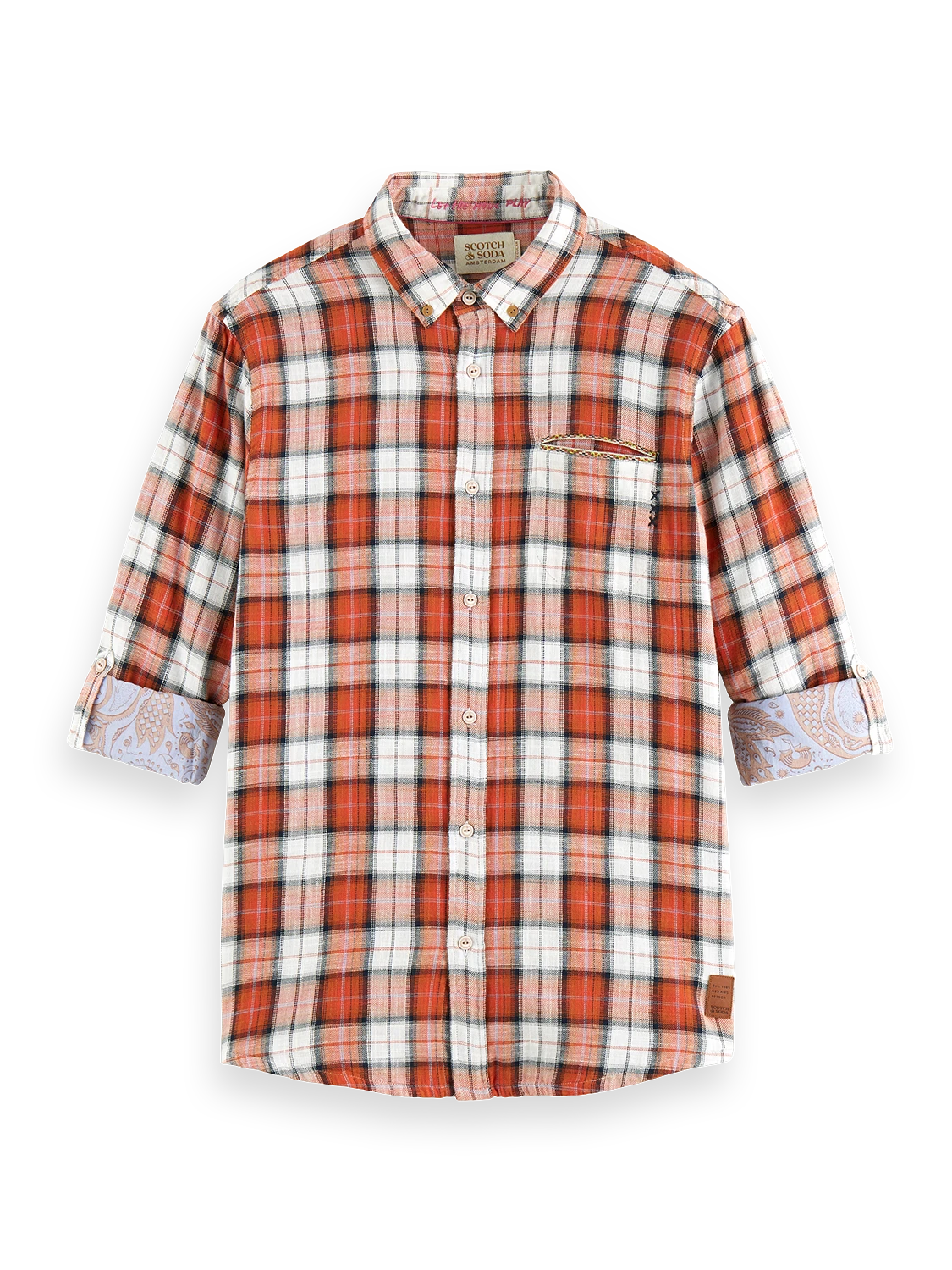Scotch & Soda Flannel Shirt With Contrast Roll Up Sleeves