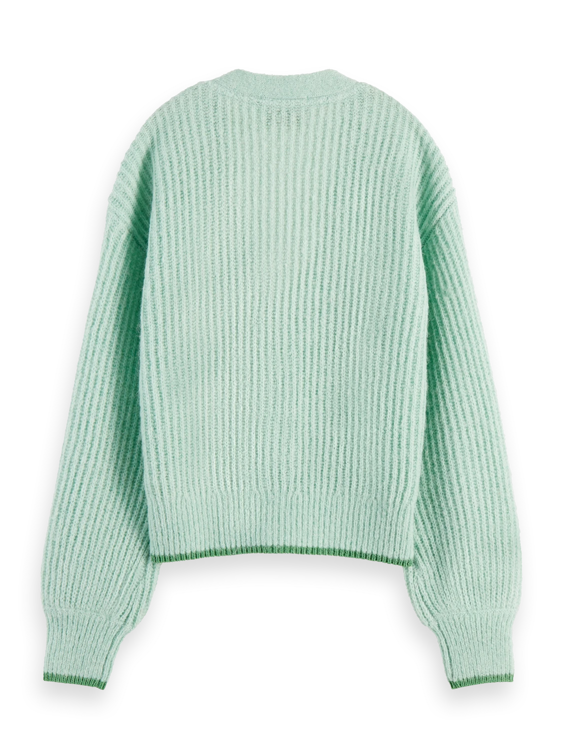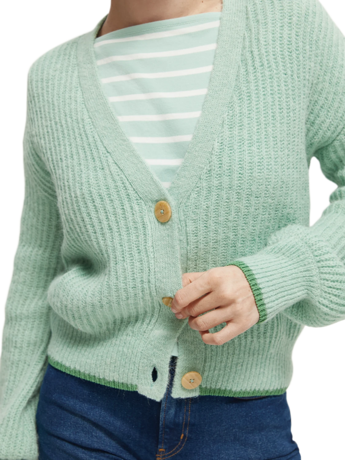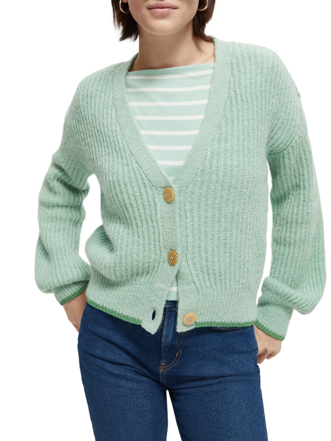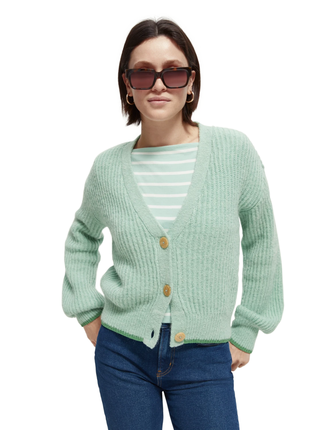 Complete with a V-neck and three-button closure, this fuzzy cardigan is soft and stylish. This knitted favourite has a boxy-fit and is available in a variety of colourways to complete any look.