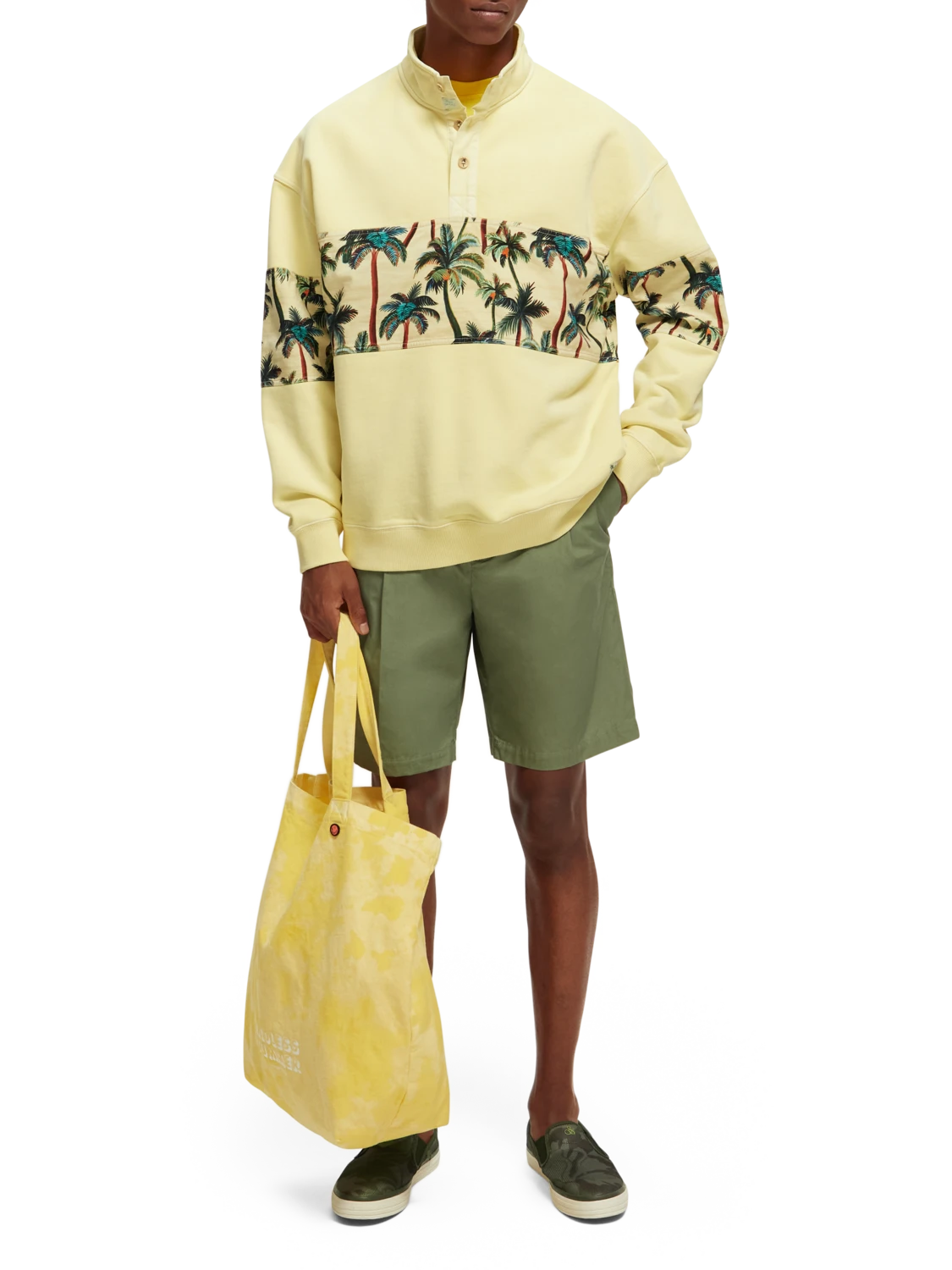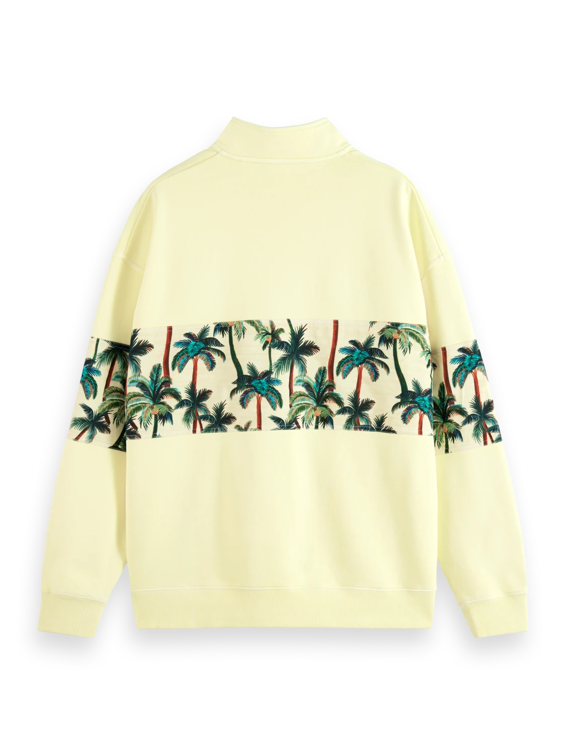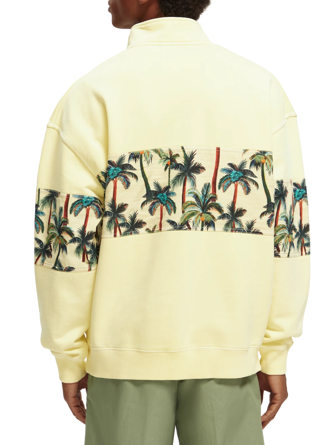 The sweatshirt is a favourite in any collection. Featuring a high neck with a half-button placket and a fun, tropical themed design across the mid-section – this style supplies comfort and warmth for day-to-day wear.