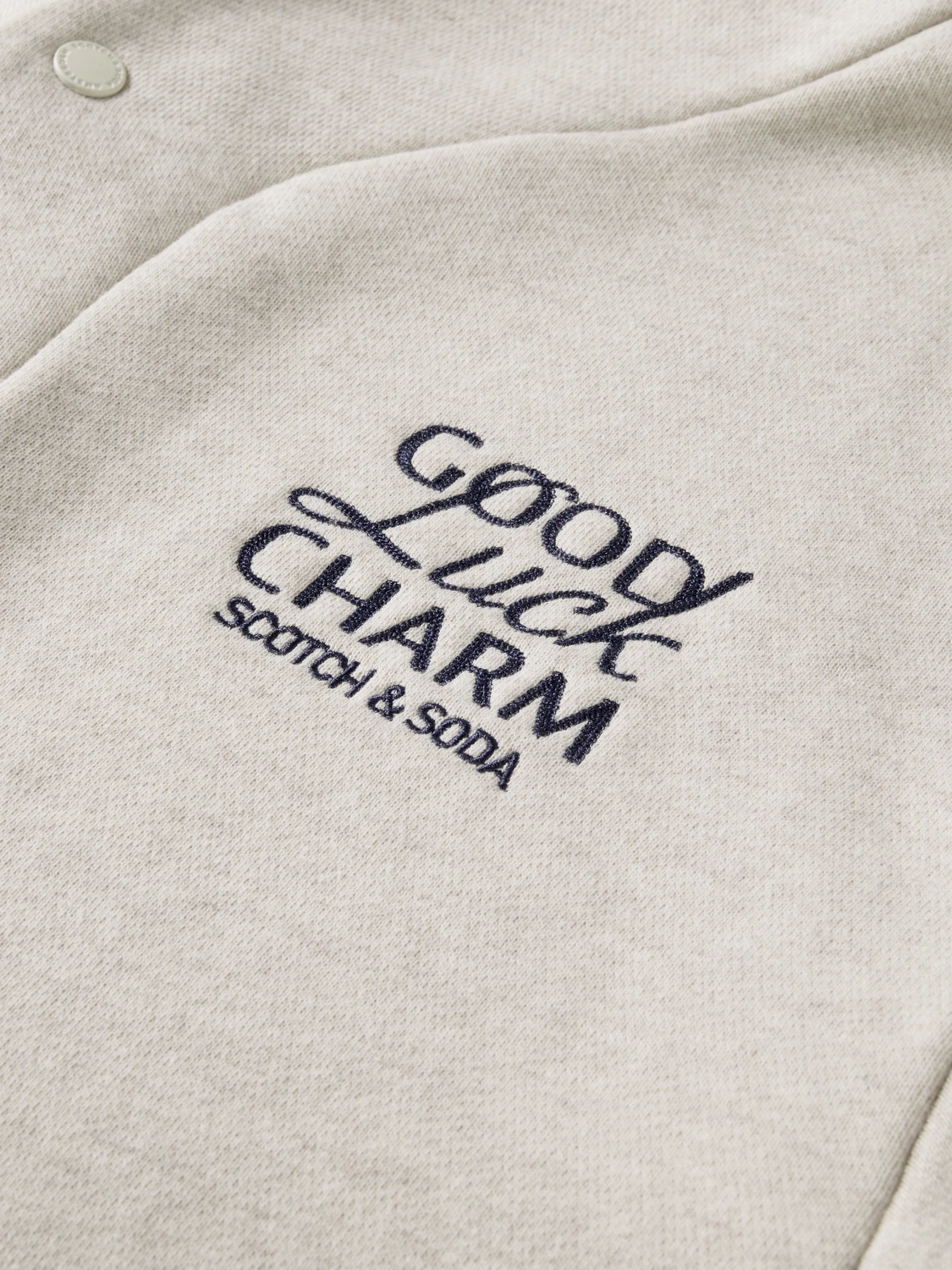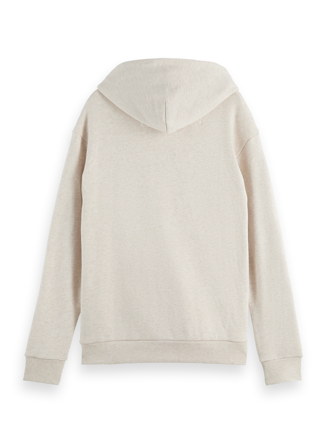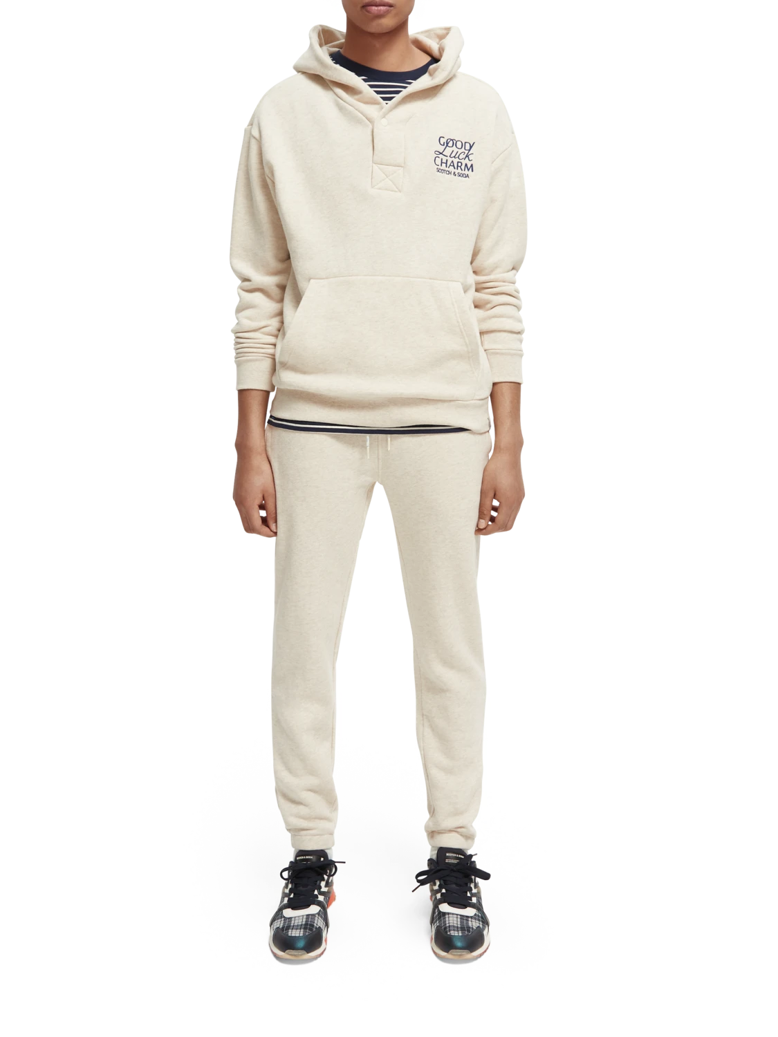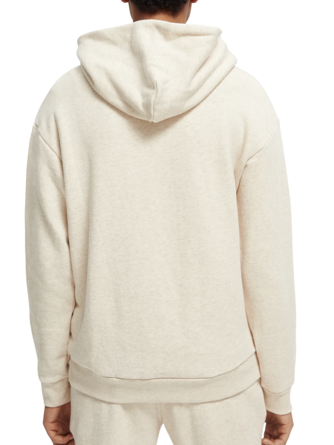 This season fear no chill with our melange hoodie with a polo inspired collar and button closure.