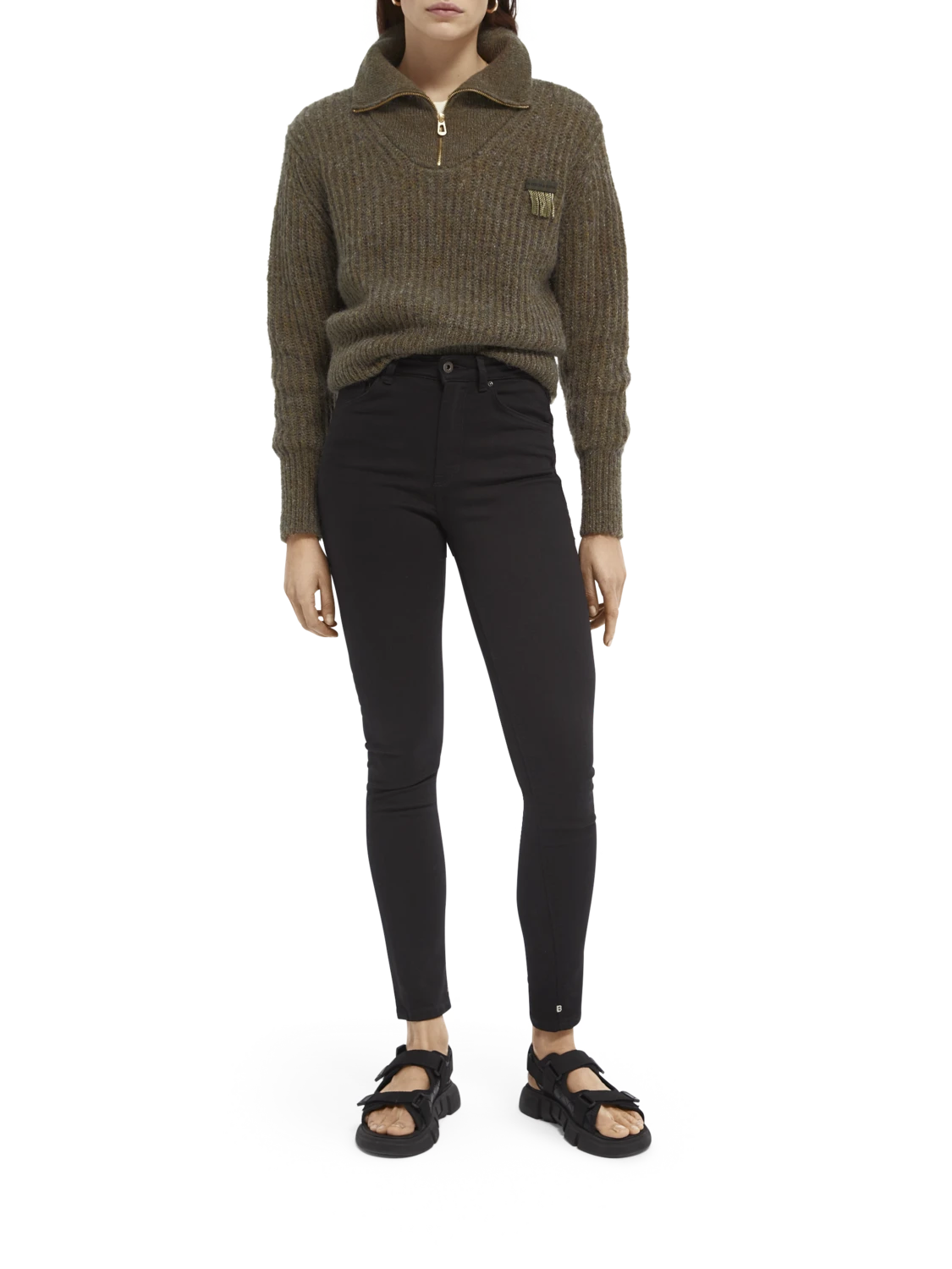 Haut is our high rise skinny fit denims. The stretch denim fabric on these jeans features a special black shade that is designed to not fade – maintaining its black colour for at least ten home washes.