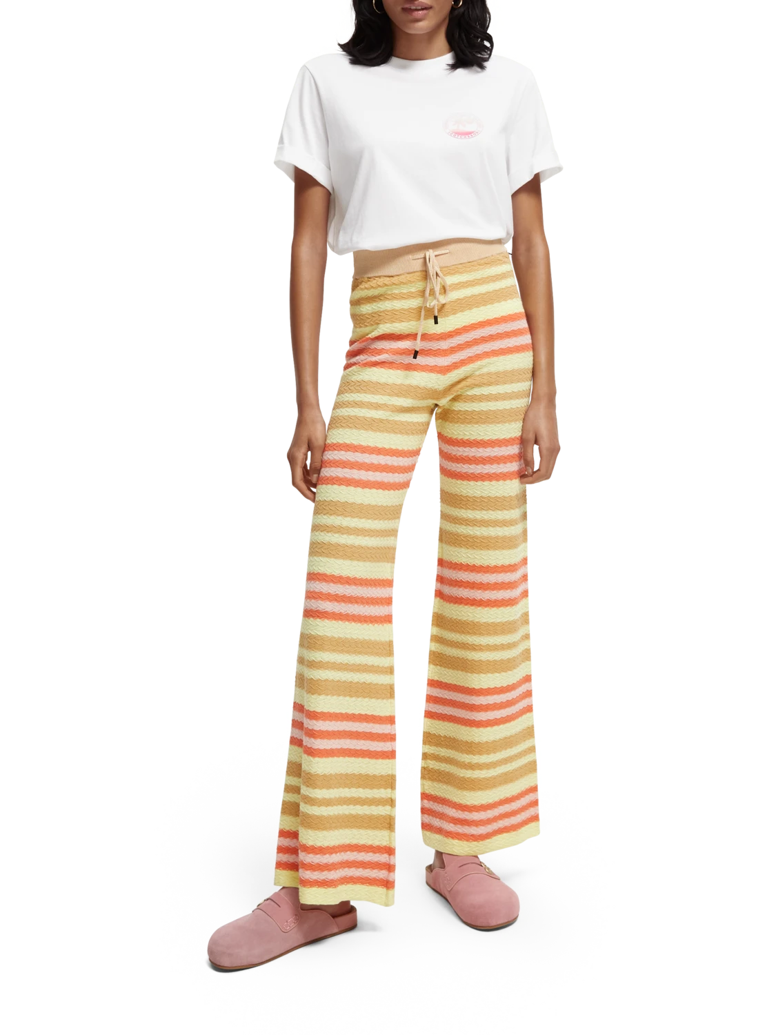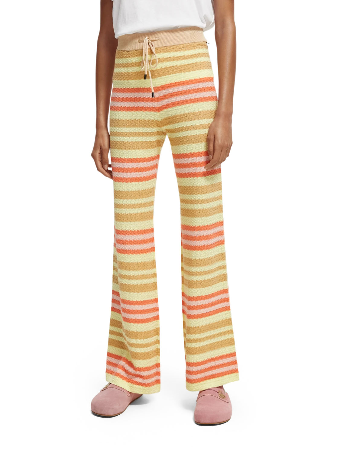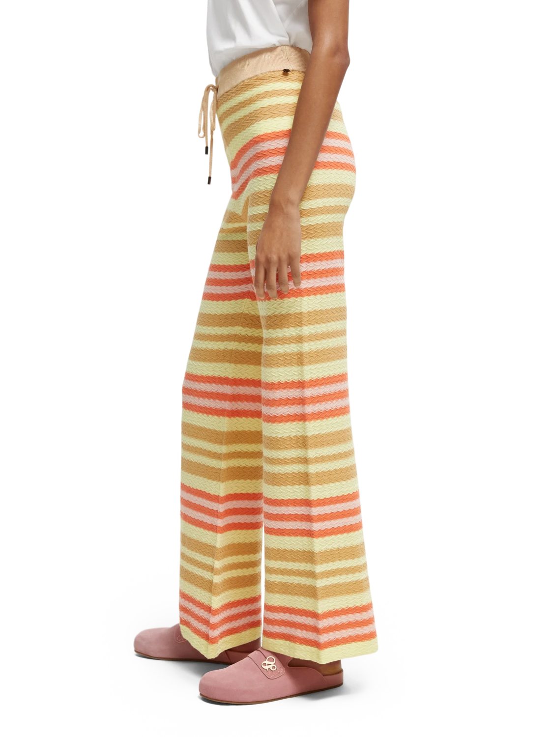 With their longer length and flared legs, these trousers are special.They come finished with a striped pattern and drawstring closure for comfort. Get ready for a lot of compliments. Made with organic cotton: non-GMO seeds are grown on land free from pesticides and synthetic fertilisers, lower water use, and farmed using crop rotation which is better for soil health.