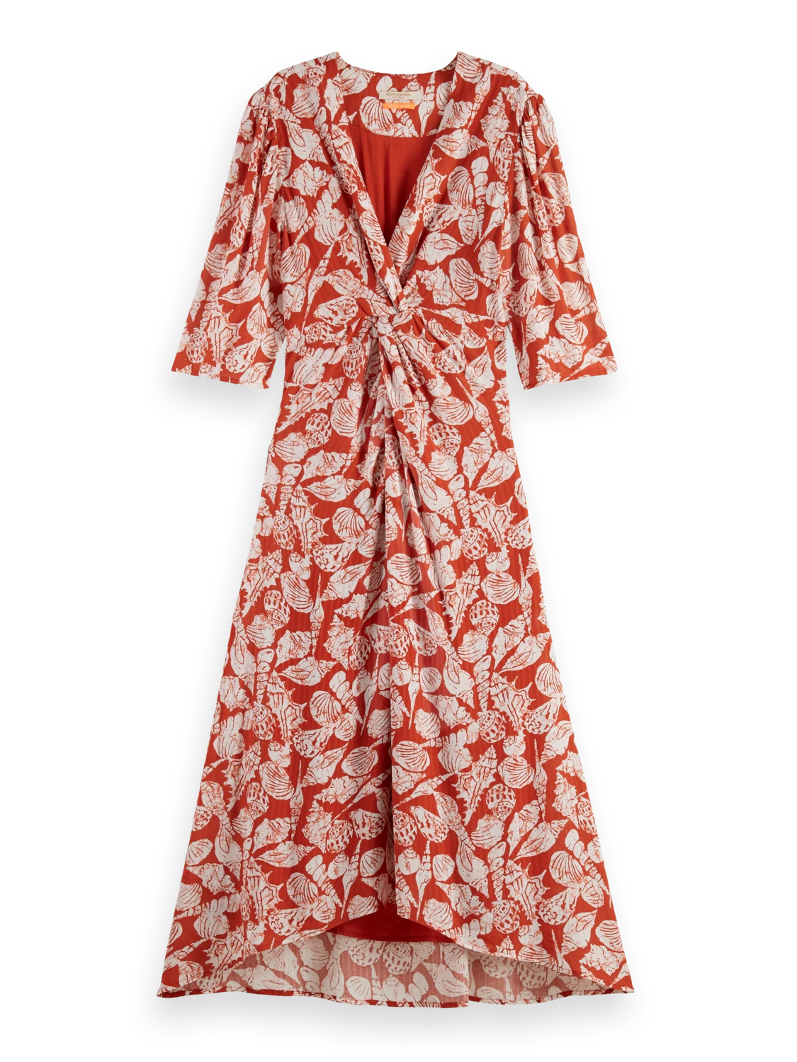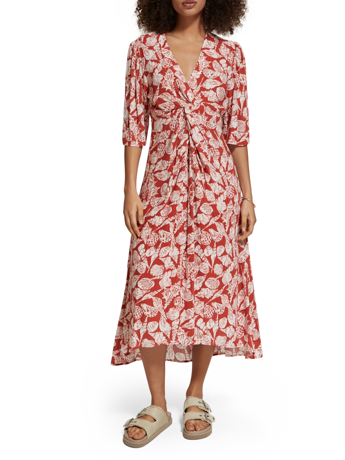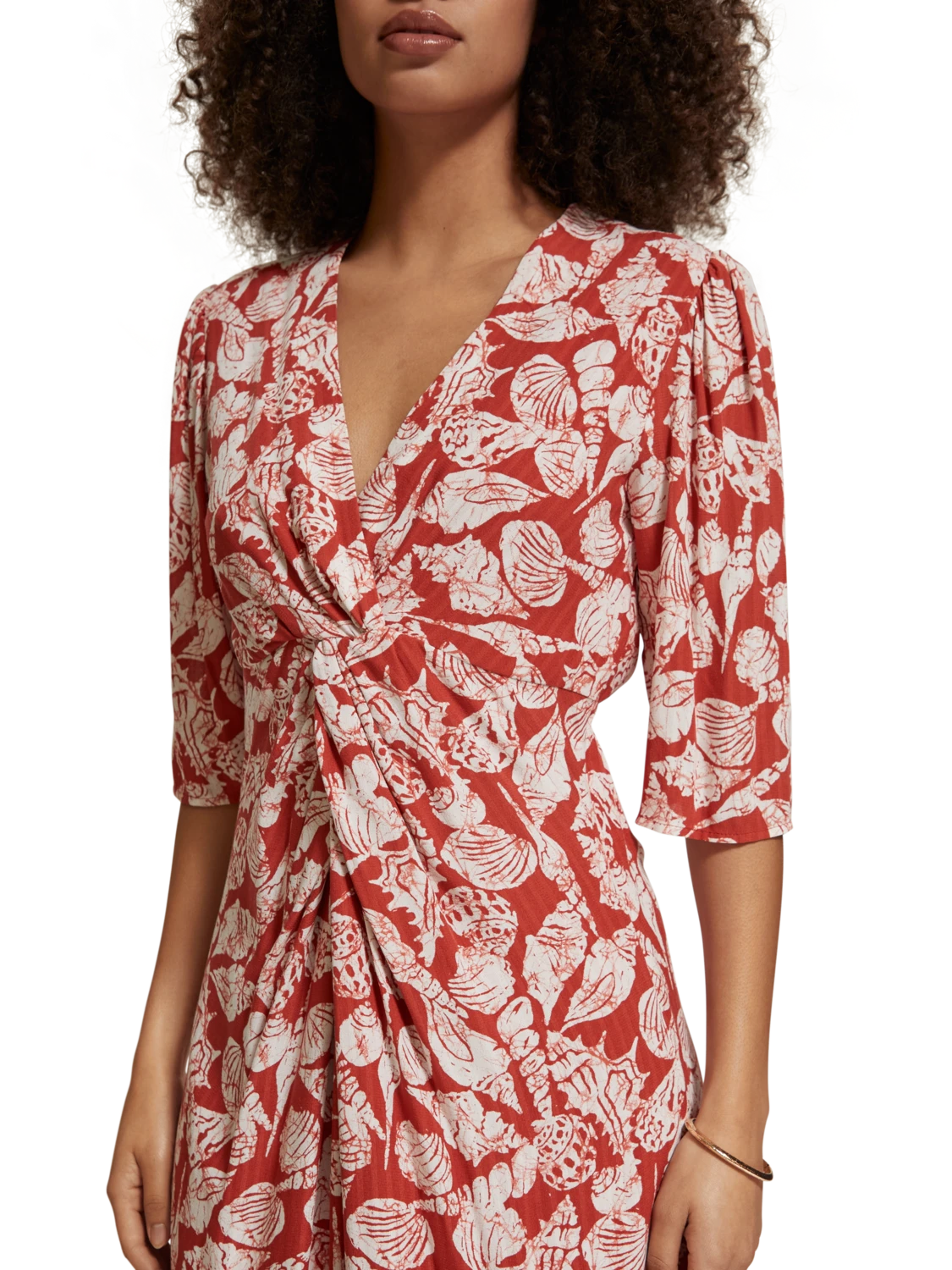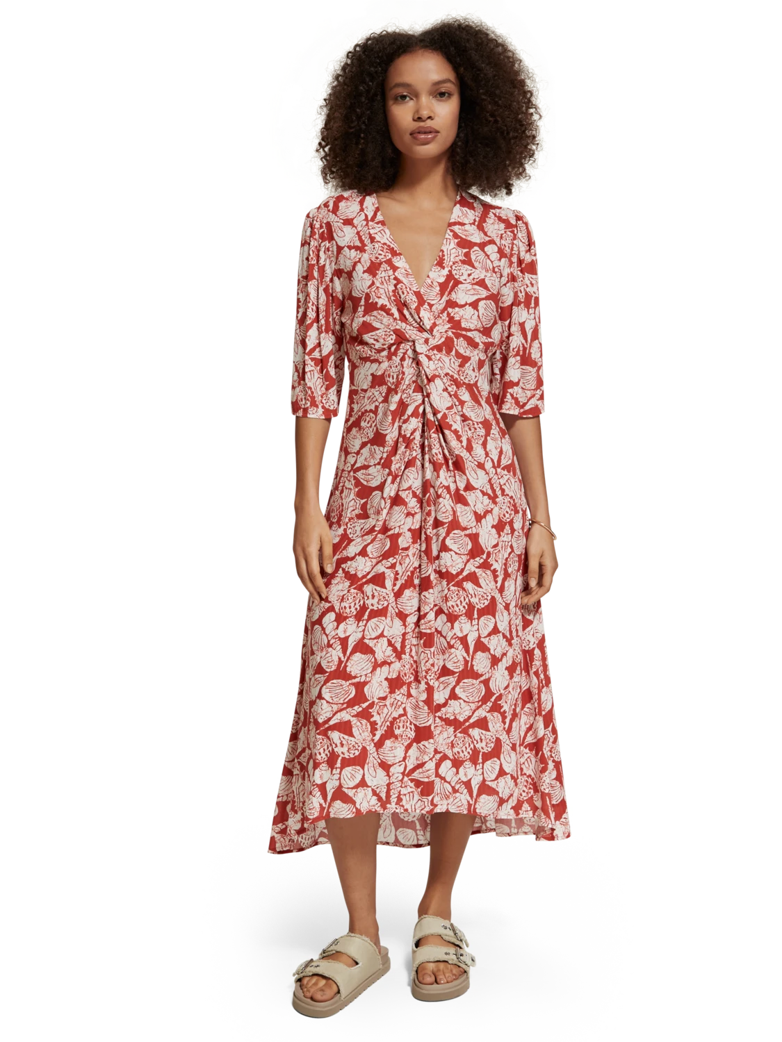 Make a statement with our Midi Wrap Dress with Knot Detail. The wrap design and knot detail create a flattering and stylish look. Made with soft and durable materials, this dress celebrates the joy of self-expression. Embrace your unique sense of style and make a statement with the Midi Wrap Dress with Knot Detail inspired by the free-spirited city of Amsterdam.