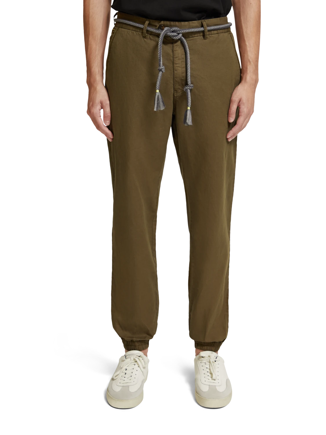Embrace a relaxed yet stylish look with our Seasonal – Relaxed Fit Garment-Dyed Linen-Blend Chino Jogger. This eclectic jogger combines the comfort of a relaxed fit with the sophisticated charm of a garment-dyed linen-blend fabric. Made with premium materials, it offers both comfort and style. The chino design adds a touch of versatility, making it a perfect choice for any occasion. Whether you pair it with a casual shirt or a blazer, this jogger celebrates individuality and embraces your unique style.