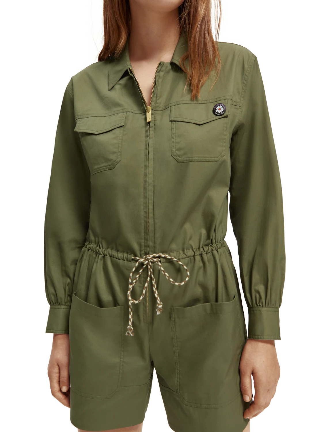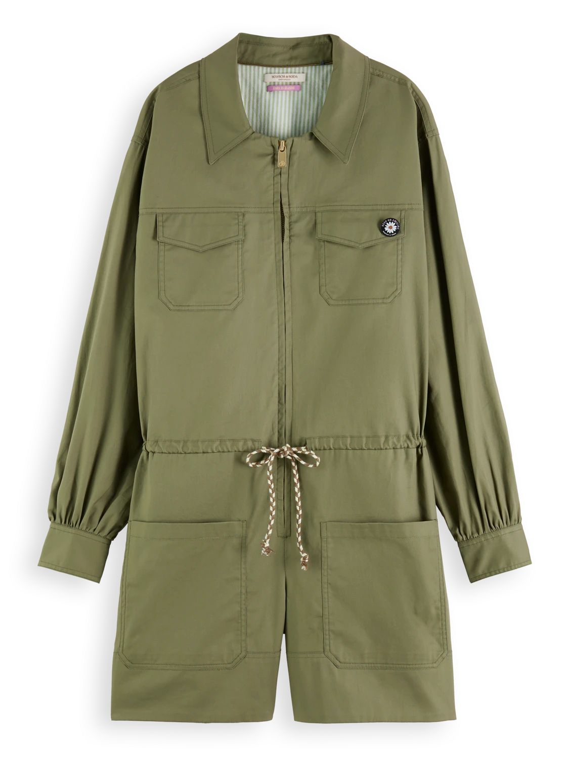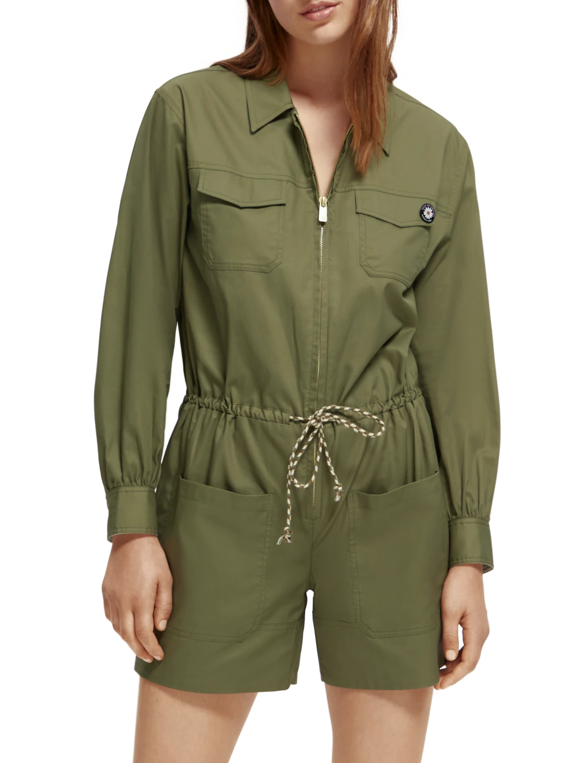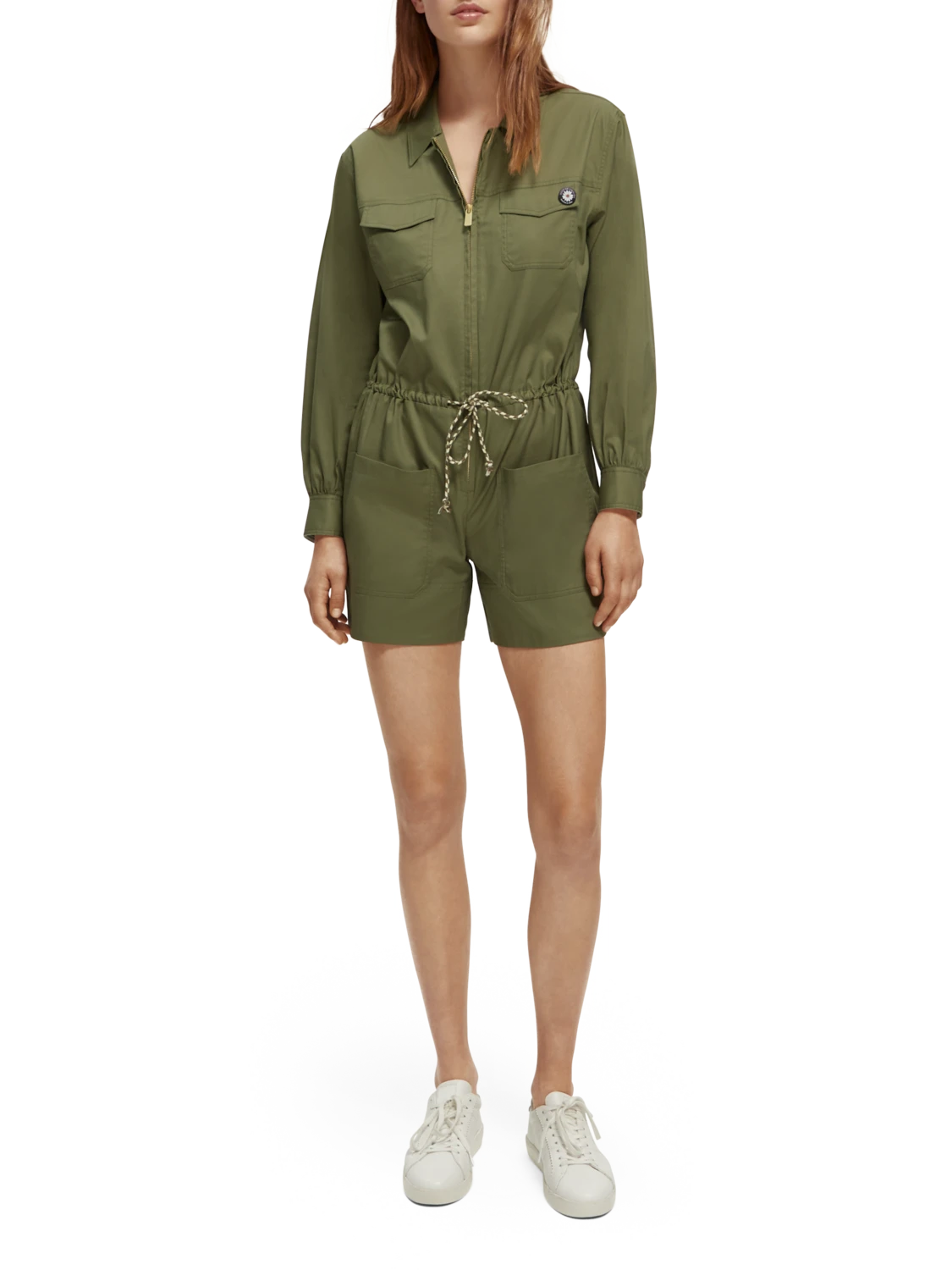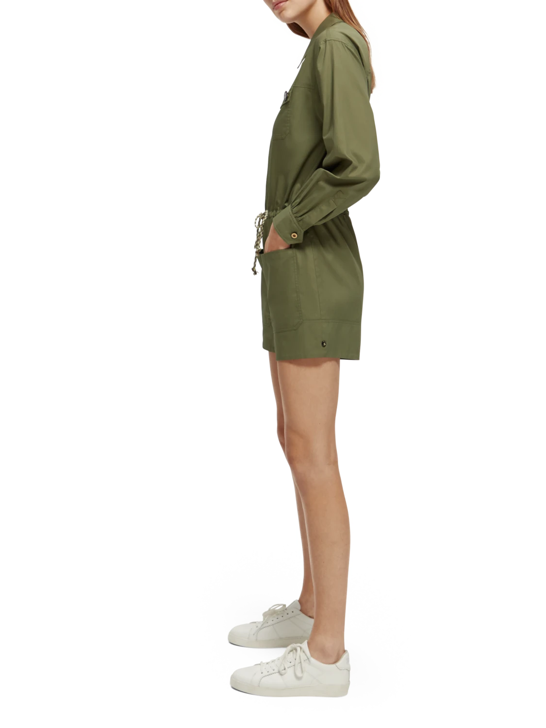 Striking an effortless balance of utility and design, our military-style playsuit is the perfect addition to the contemporary wardrobe. This playsuit features four-pocket detailing, a drawstring waist – and long-sleeves rounded out with a fitted cuff.