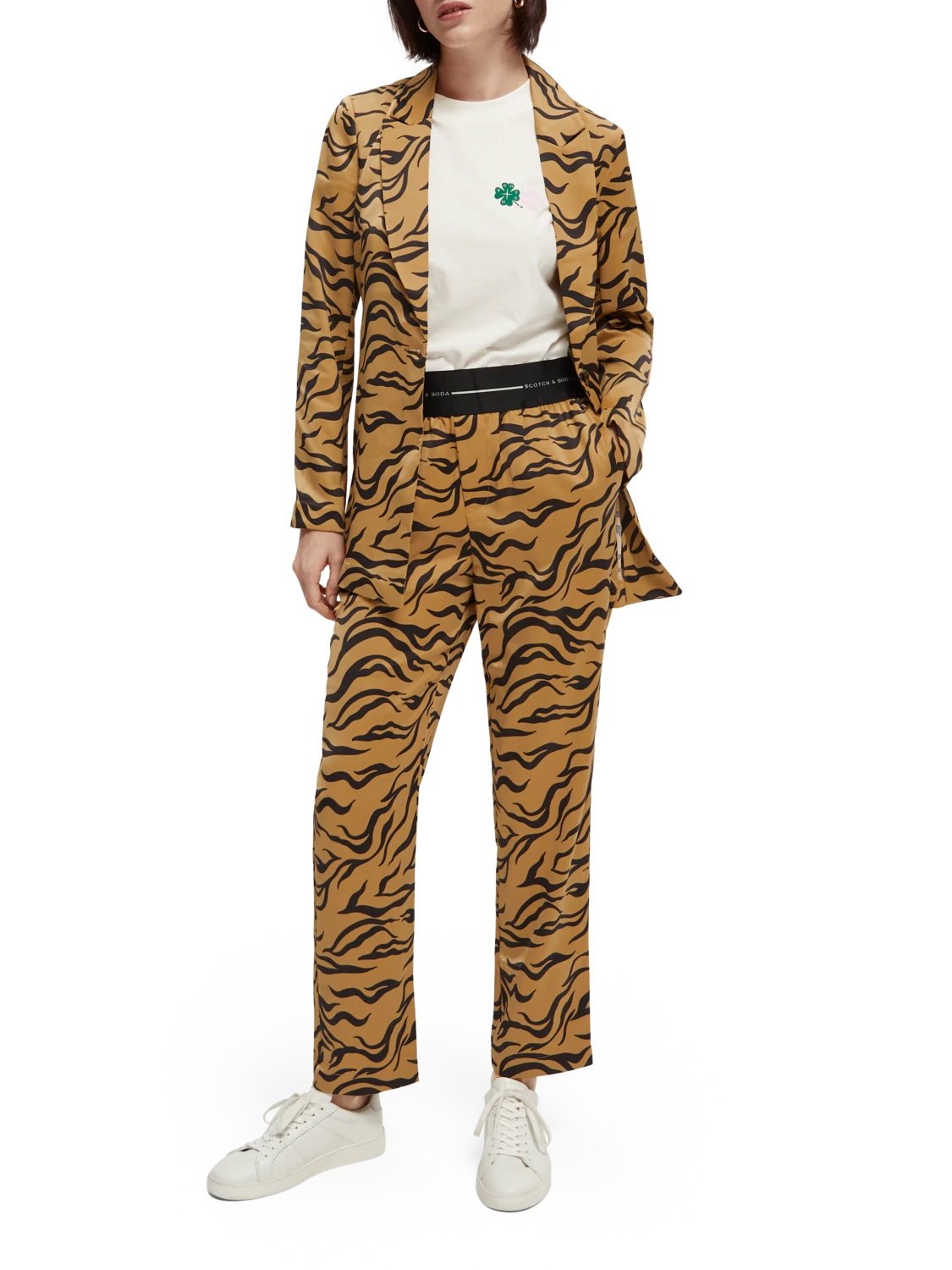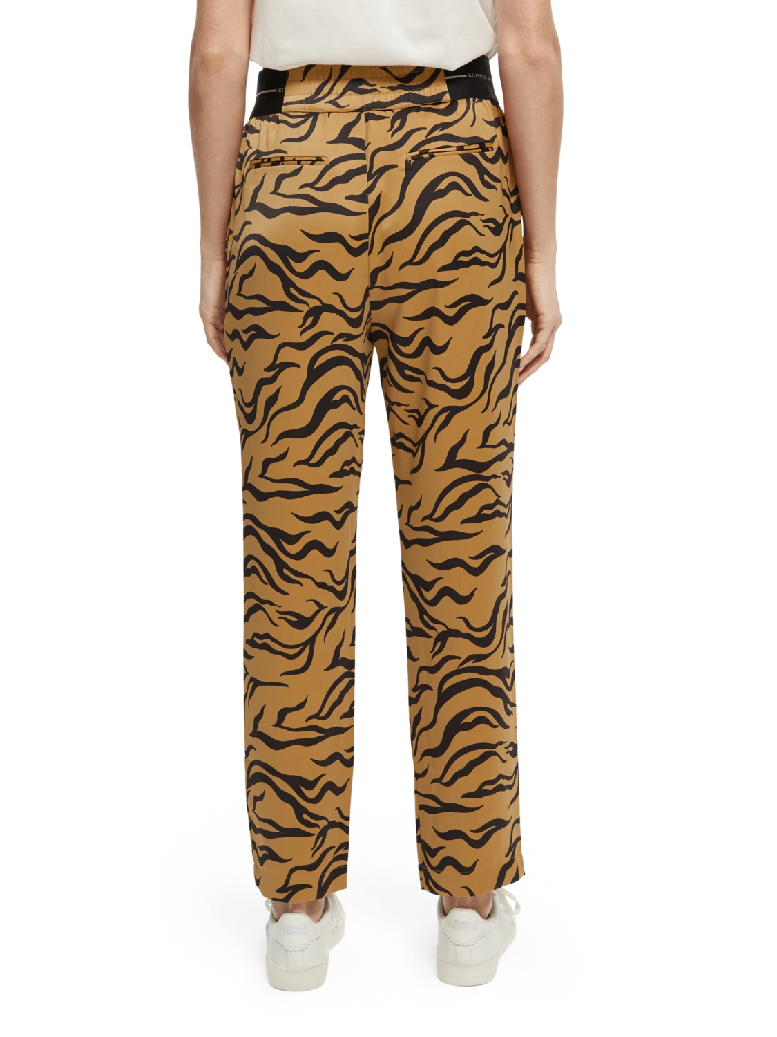 Who said being bold shouldn’t be comfortable? Well not us. This season enjoy our elasticated trousers in two stunning prints. Finished with branded waistband, metal plate detailing and back pockets.
