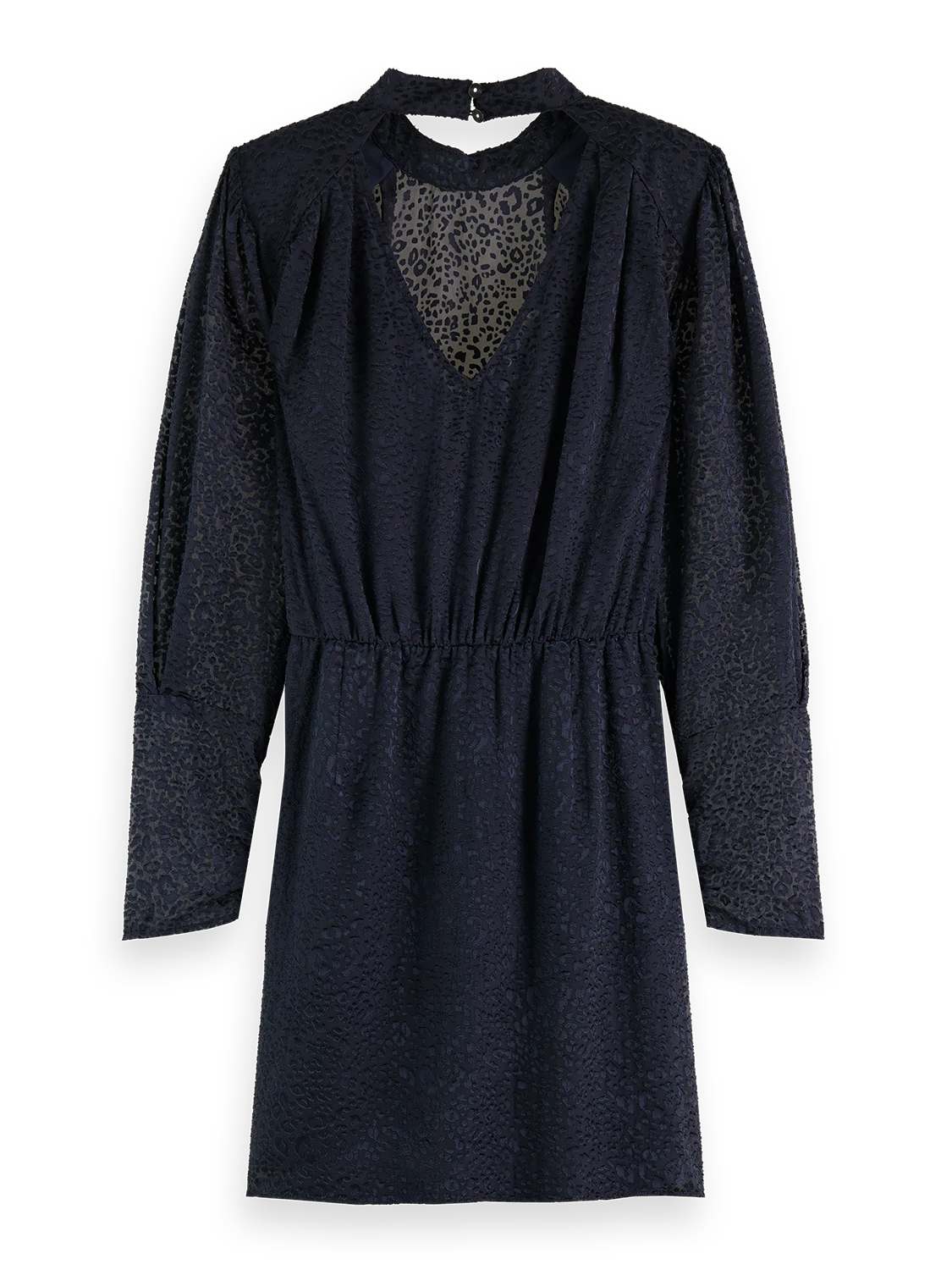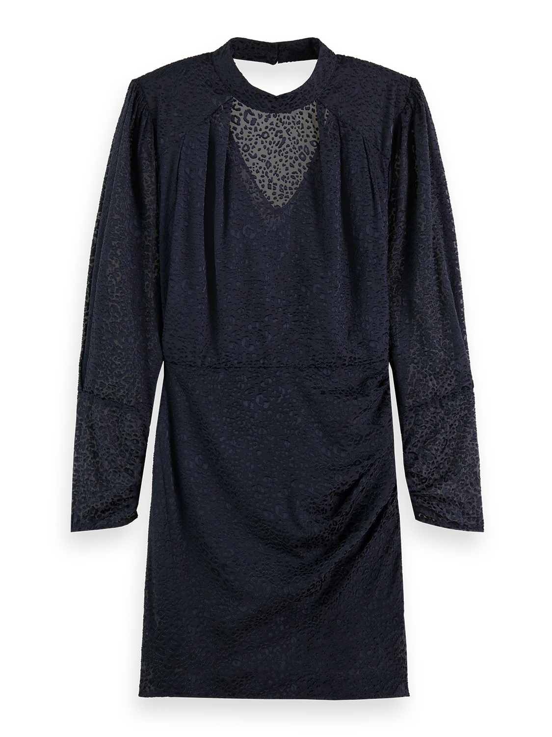 Scotch & Soda Mock Neck Mini Animal Printed Open Back Dress