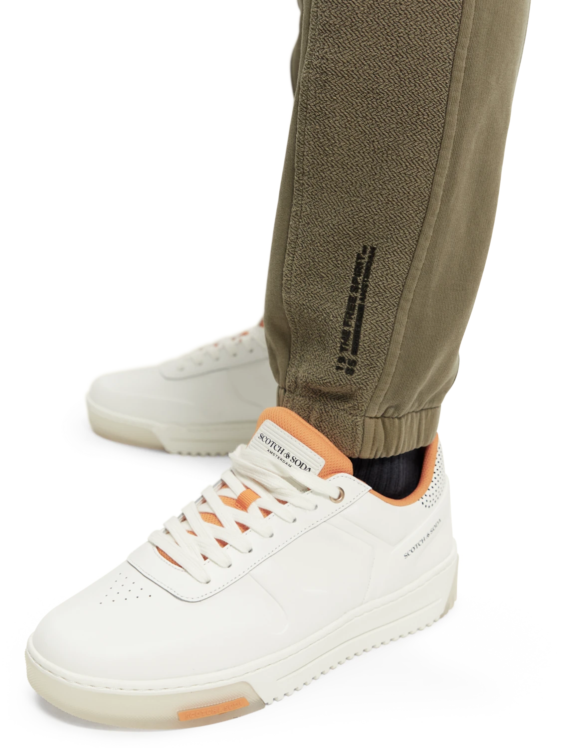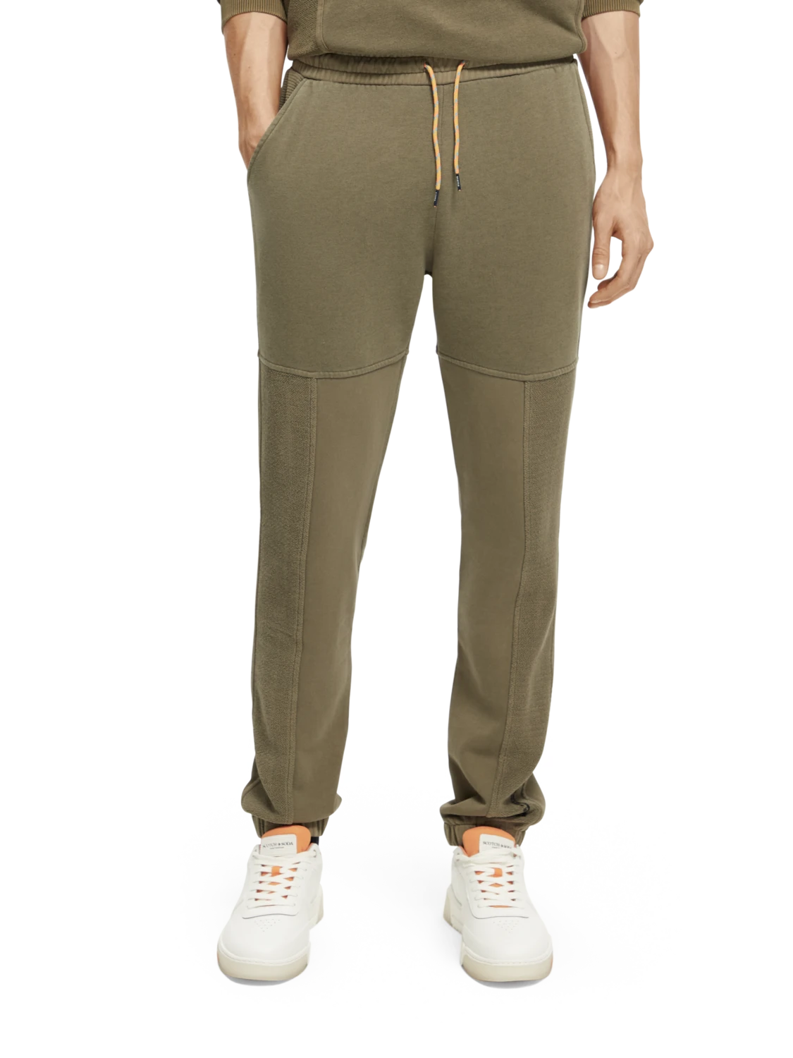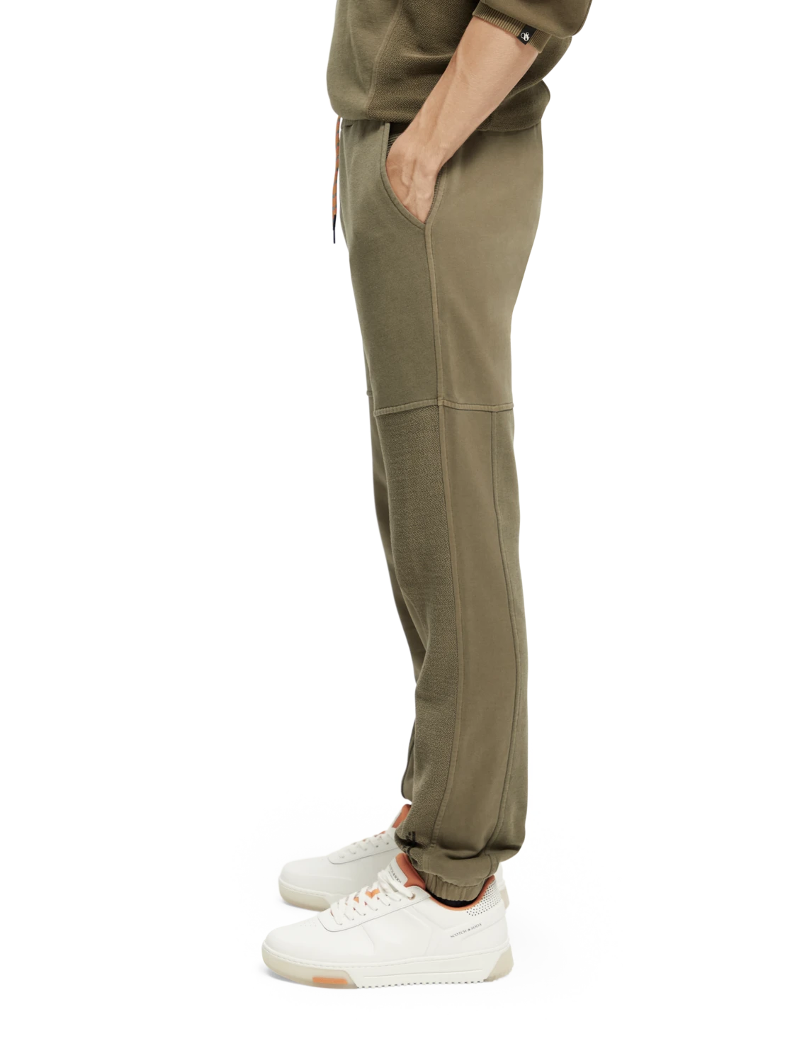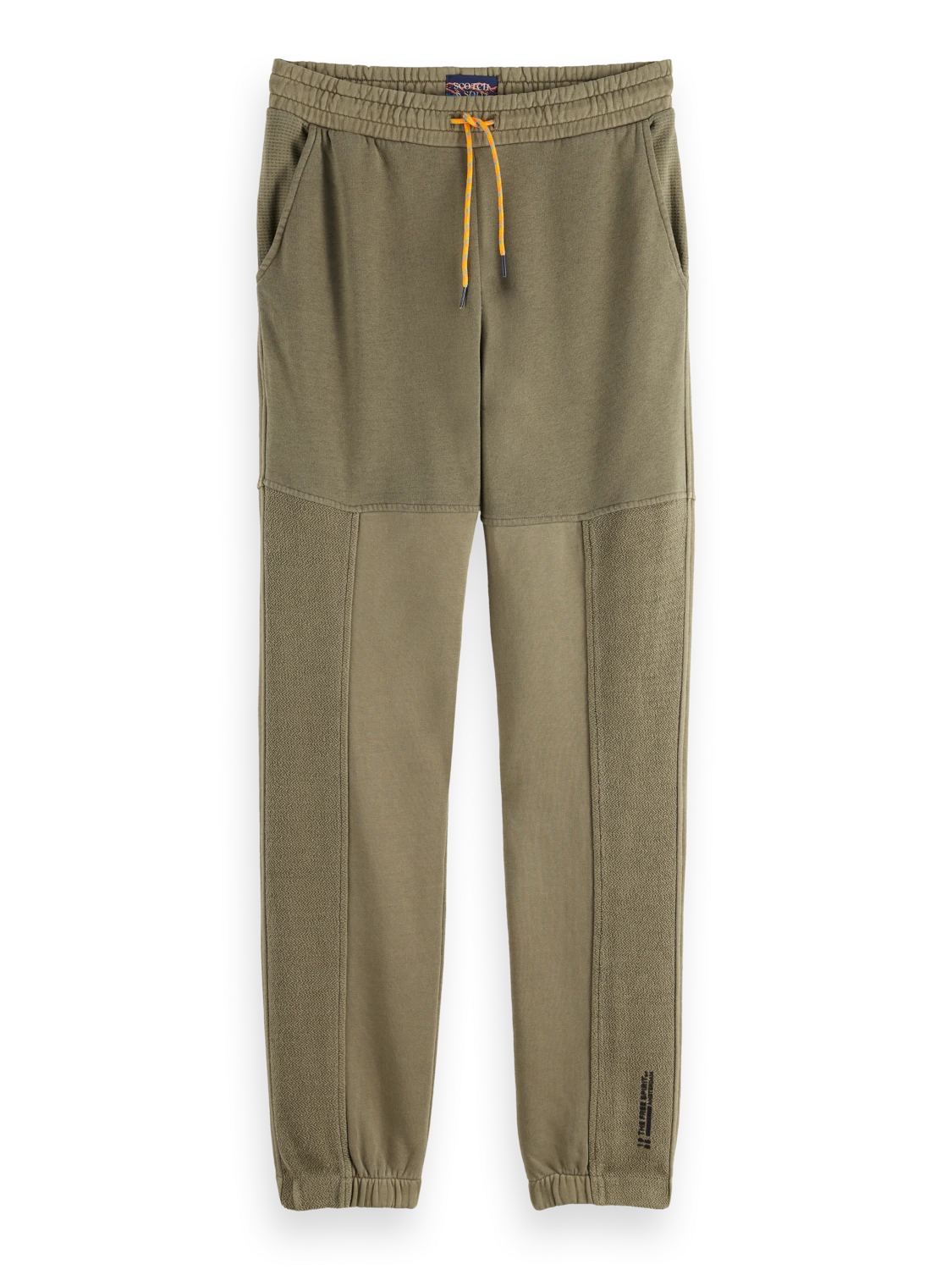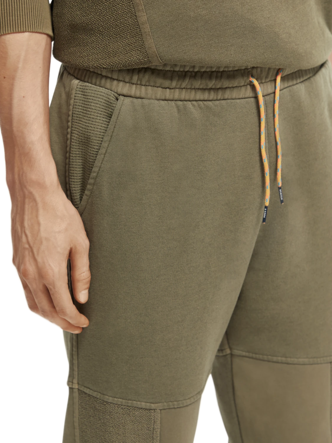 These sweatpants are designed to comfortably support free movement – no matter the activity level. Featuring a patched design, with an elasticated waist and ankle – and an added drawstring for an easy perfect fit adjustment.