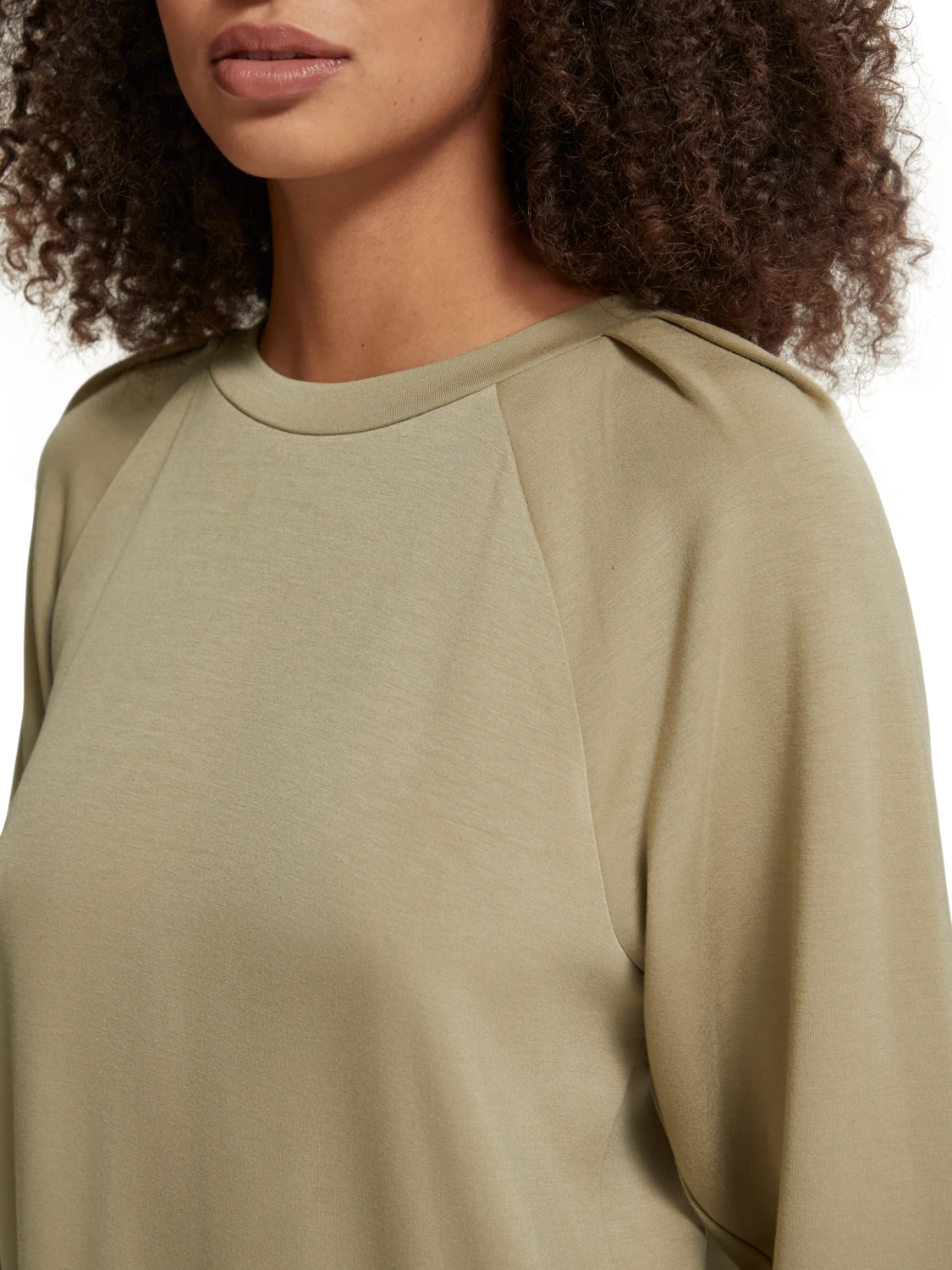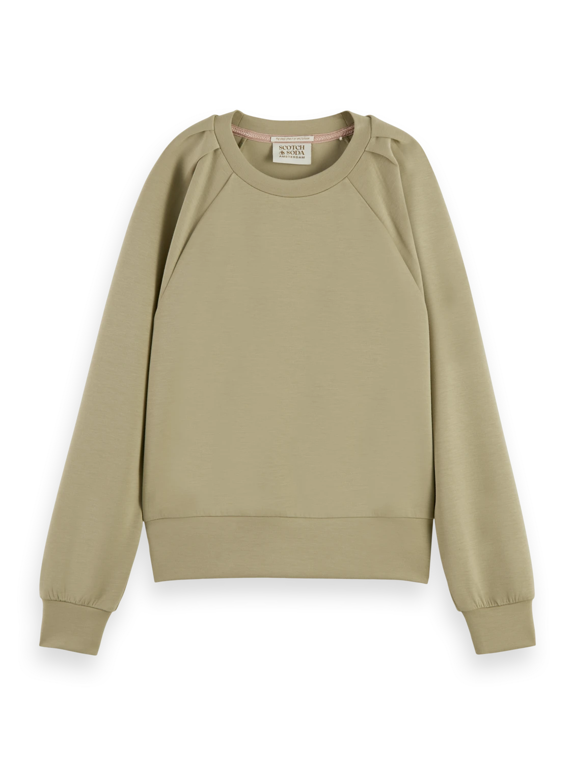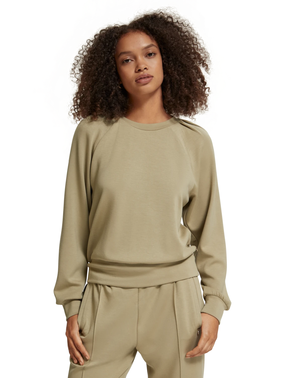 Upgrade your loungewear with this pleated shoulder sweatshirt. The pleated shoulder detailing adds a touch of sophistication to this cozy silhouette. Crafted with comfort and style in mind, this sweatshirt is perfect for both relaxing at home and running errands. With its effortlessly stylish design, this piece is a must-have for the modern individual who values both style and comfort.