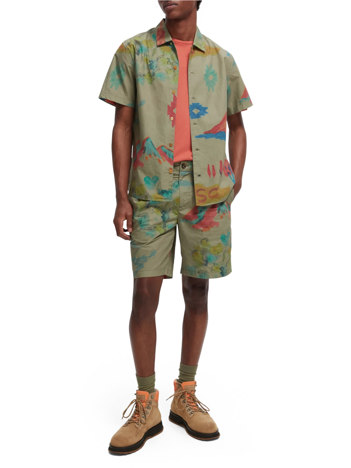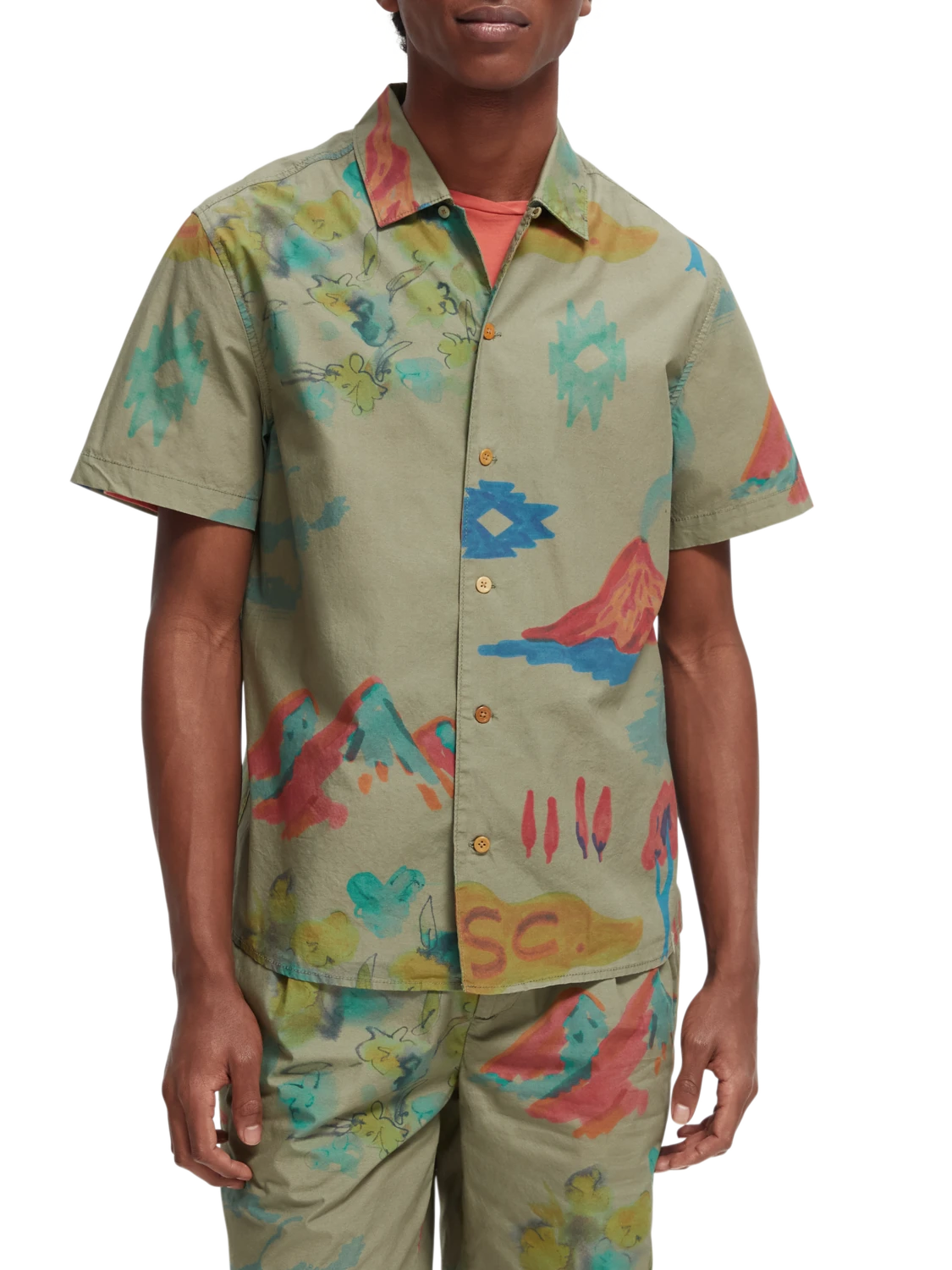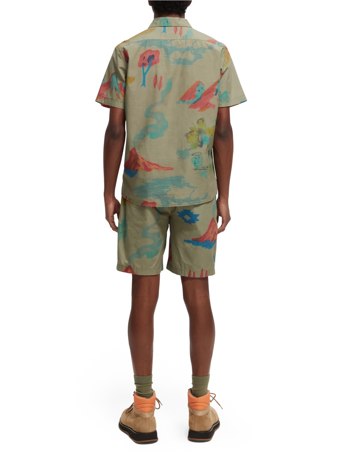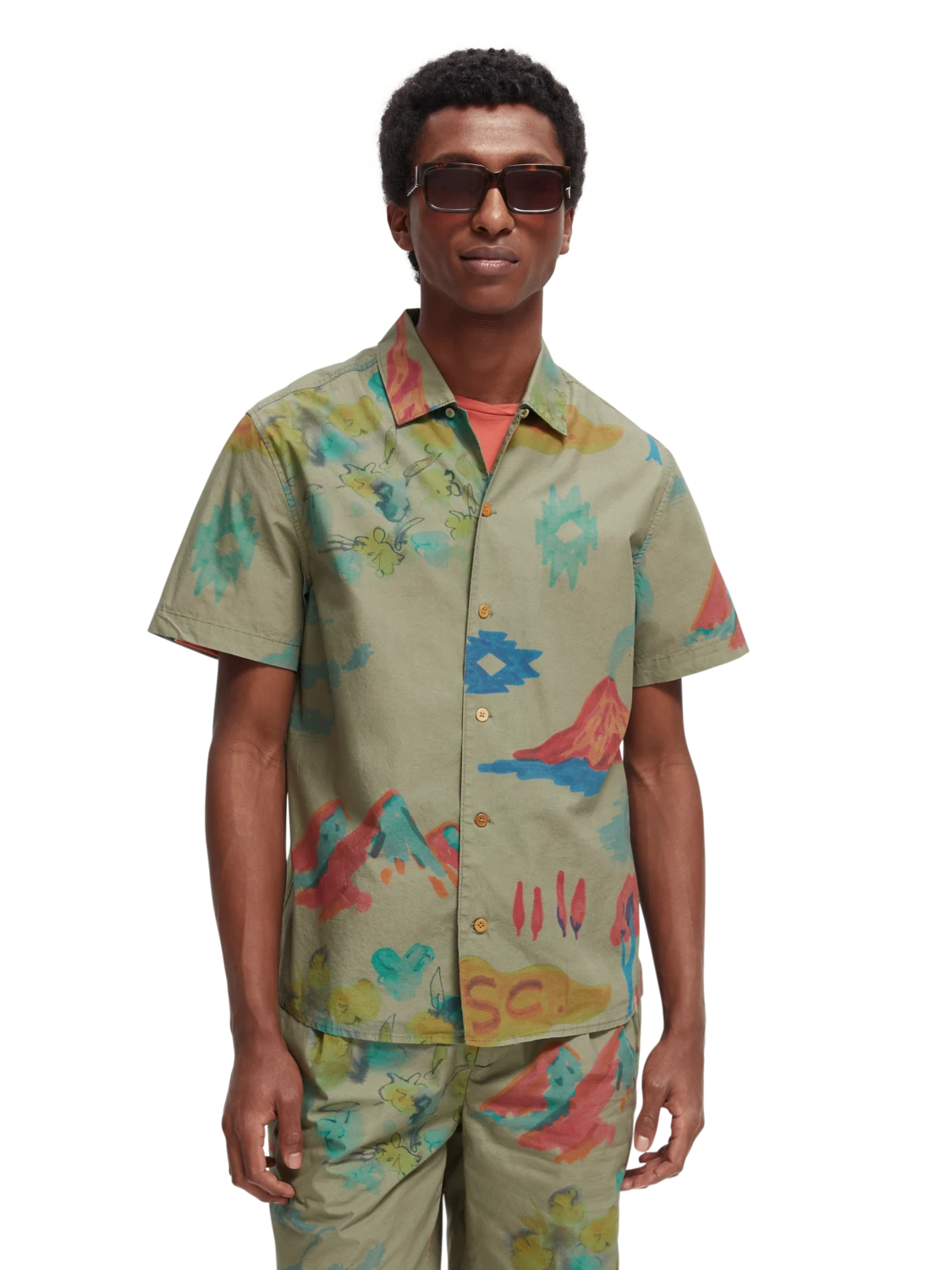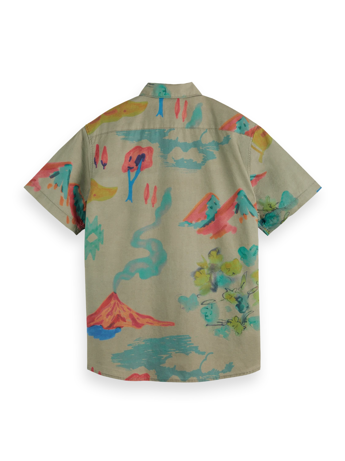 Cut with a regular-fit, this short-sleeve poplin shirt features an eye-catching print.