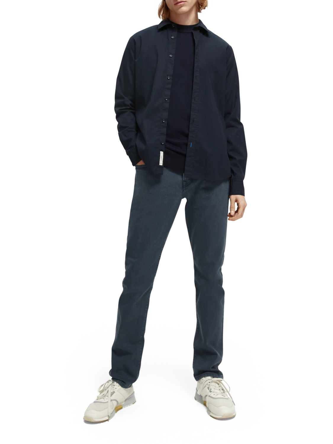 The Ralston is an iconic long-standing favourite. Cut for a regular slim fit – a hint of elastane gives a comfortable, relaxed feel. Our latest take comes washed in a dark grey tone, complemented with a button fly and stylistic detail at the coin rivet.