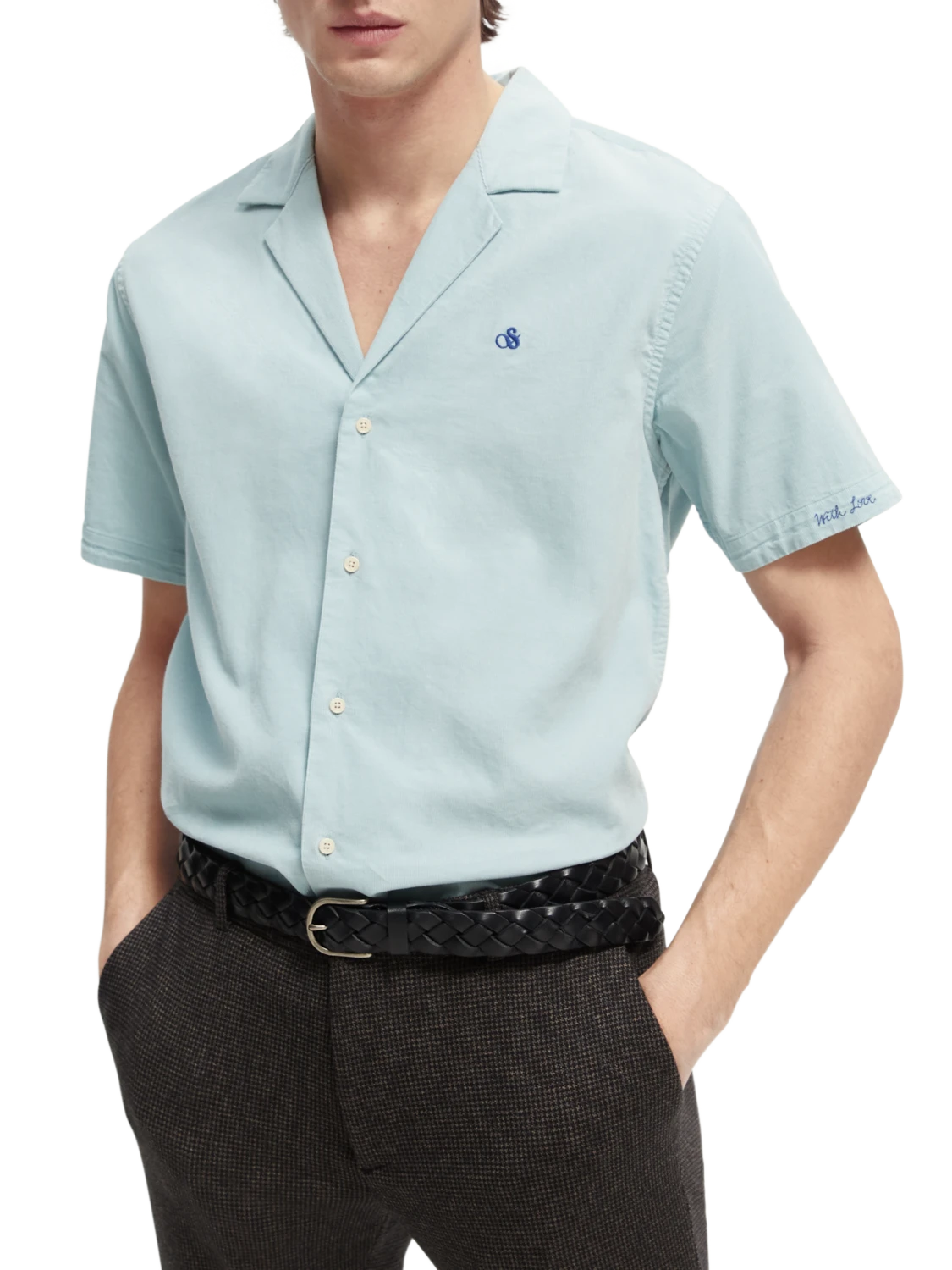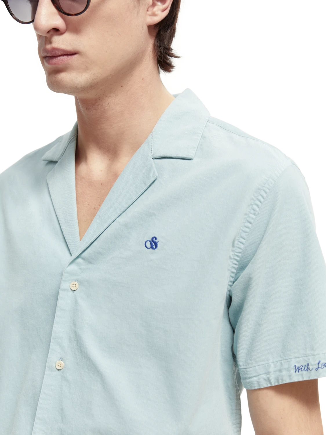The camp shirt has been reimagined with this corduroy variation. Made from 100% cotton, this comfortable style features an embroidered Scotch & Soda logo on the left-chest as well as the words With Love on the left cuff.