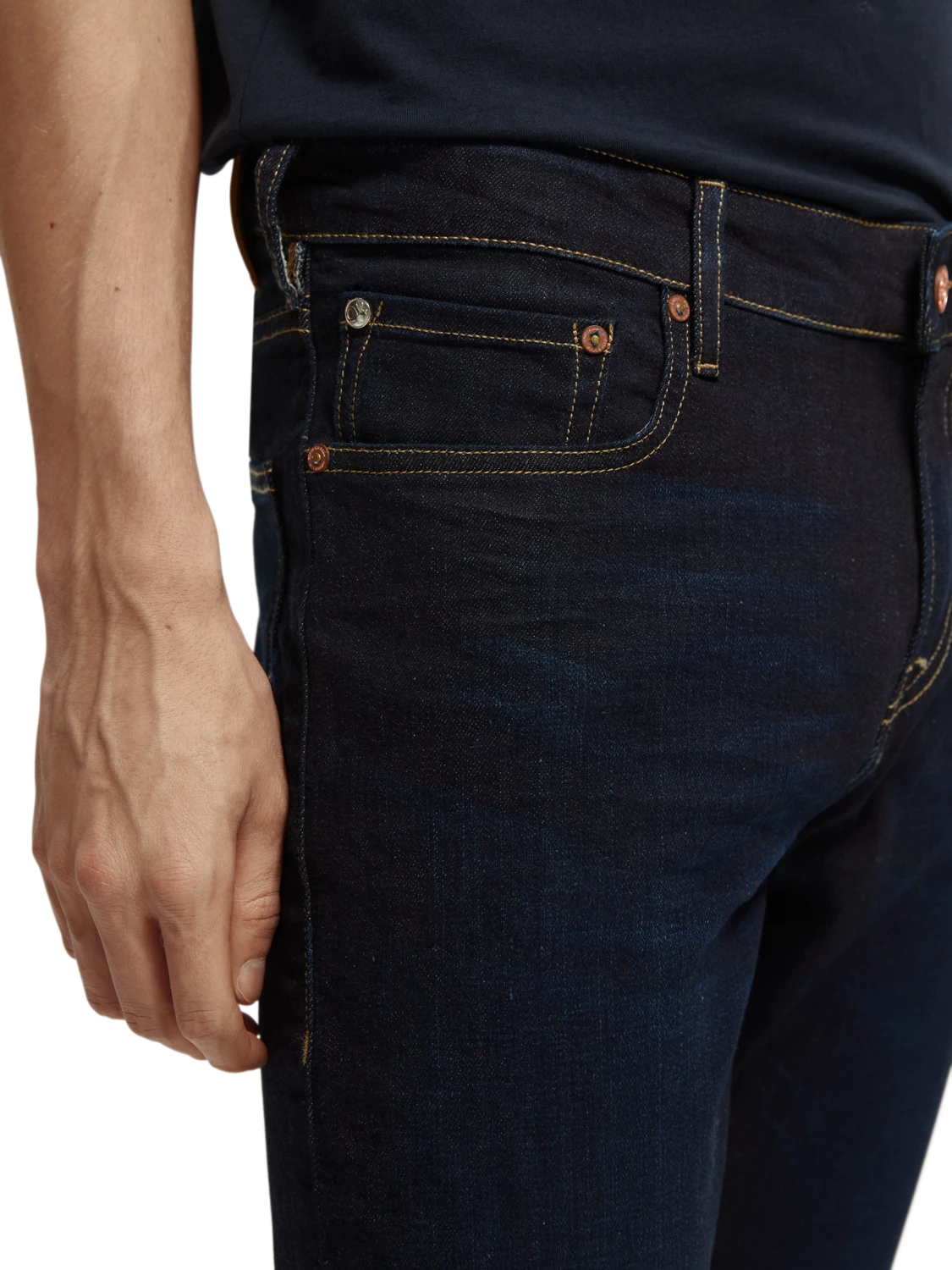 Cut super-slim, the Skim is form-fitting from waist to ankle. An infusion of elastane makes this skinny style comfortable throughout the day. Washed in a deep indigo tone, finished with special coin rivet detailing and a zip fly.