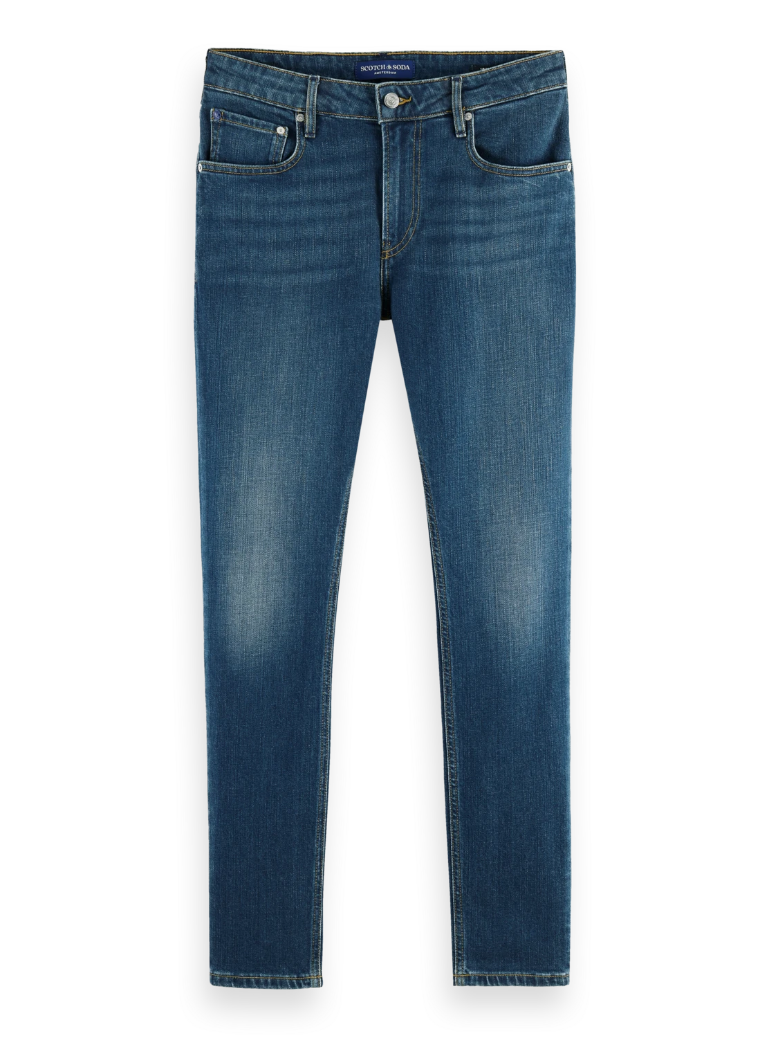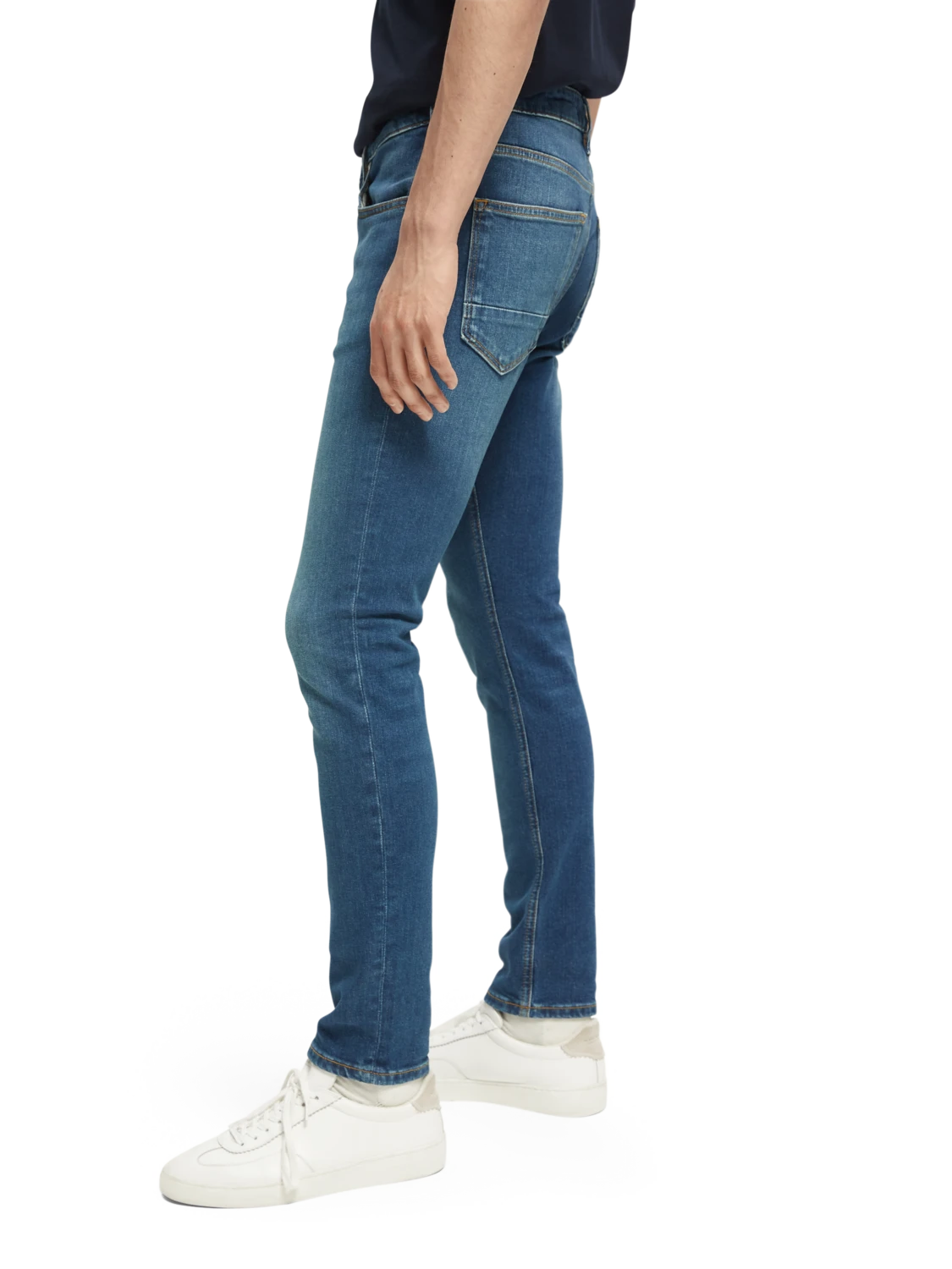 Cut super-slim, the Skim is form-fitting from waist to ankle. An infusion of elastane makes this skinny style comfortable throughout the day. Washed in a classic blue tone, finished with special coin rivet detailing and a zip fly.