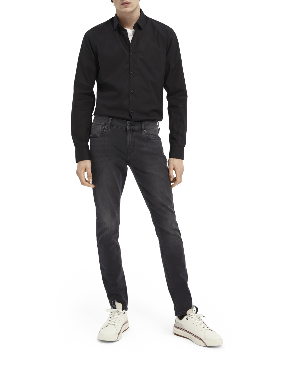 Cut super-slim, the Skim is form-fitting from waist to ankle. An infusion of elastane makes this skinny style comfortable throughout the day. Washed in a deep grey tone, finished with special coin rivet detailing and a zip fly.