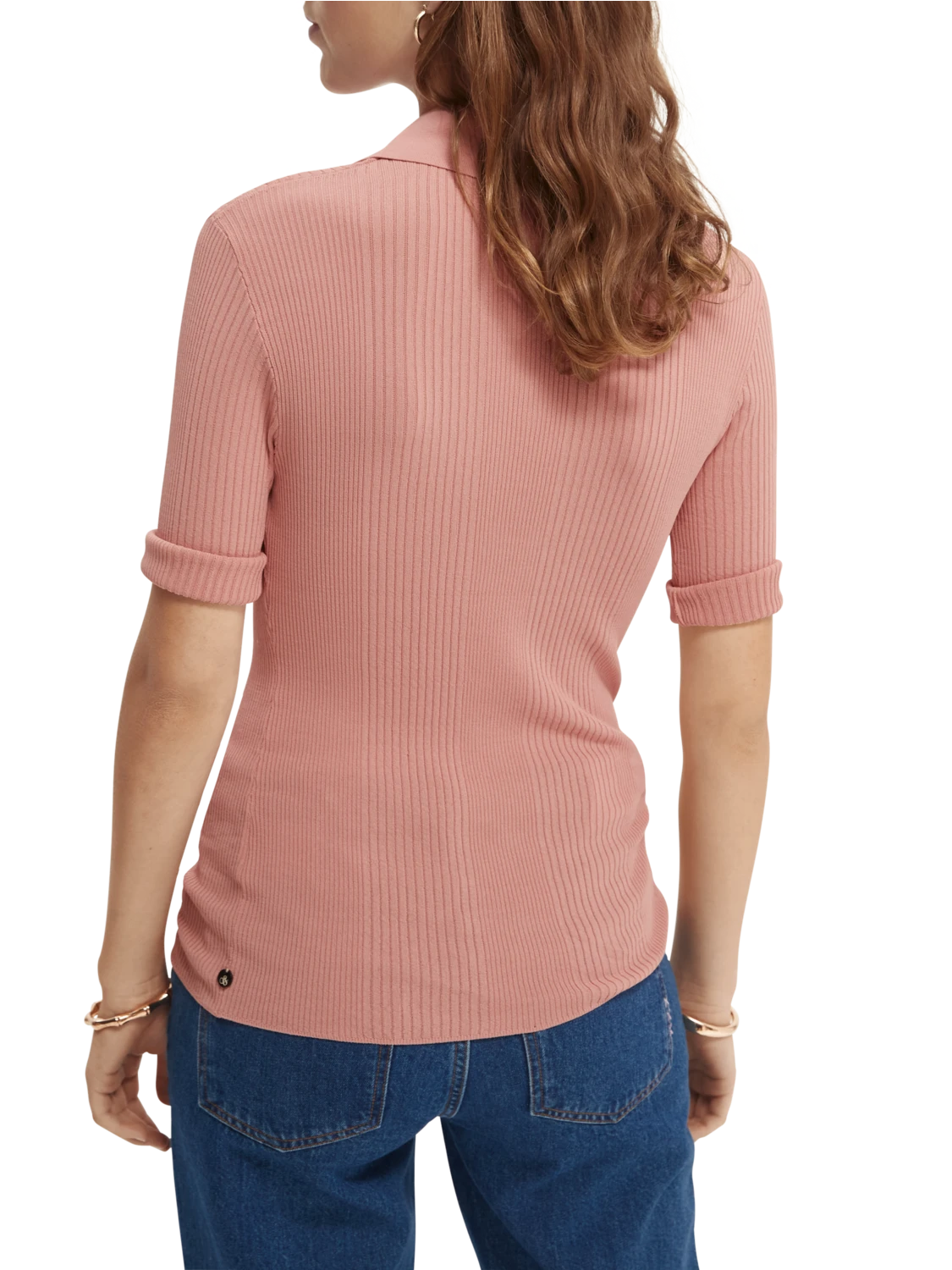 A warm take on the classic polo design: this piece has a slim-fit, a ribbed structure and short sleeves. The deep colour is superb for styling your autumnal outfit.