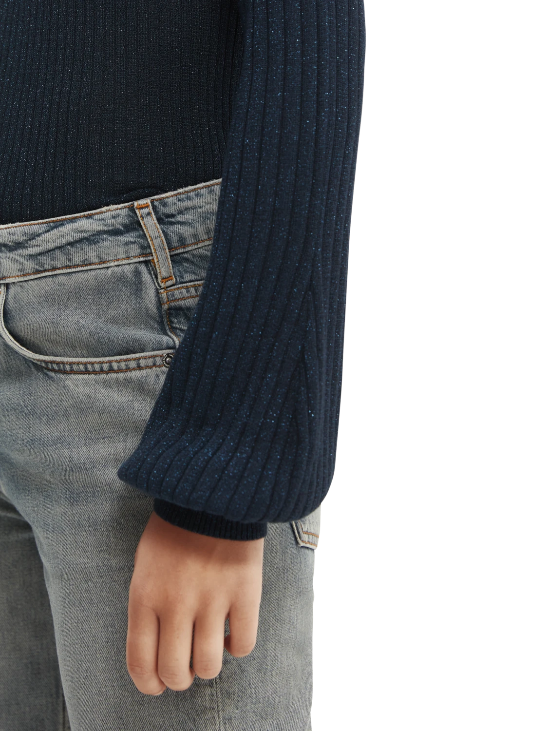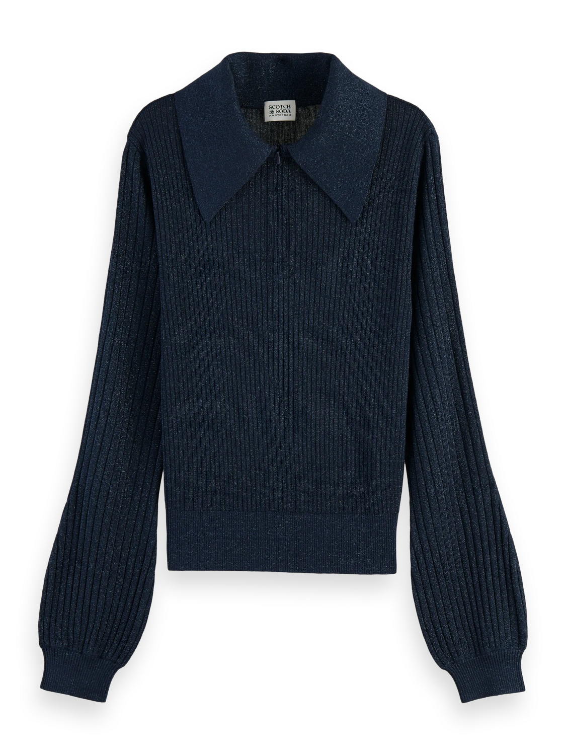 Inspired by the polo – this slim-fit sweater features a zip-up polo neck with an extra-large collar. This, combined with its balloon sleeves, makes for a fun sweater.