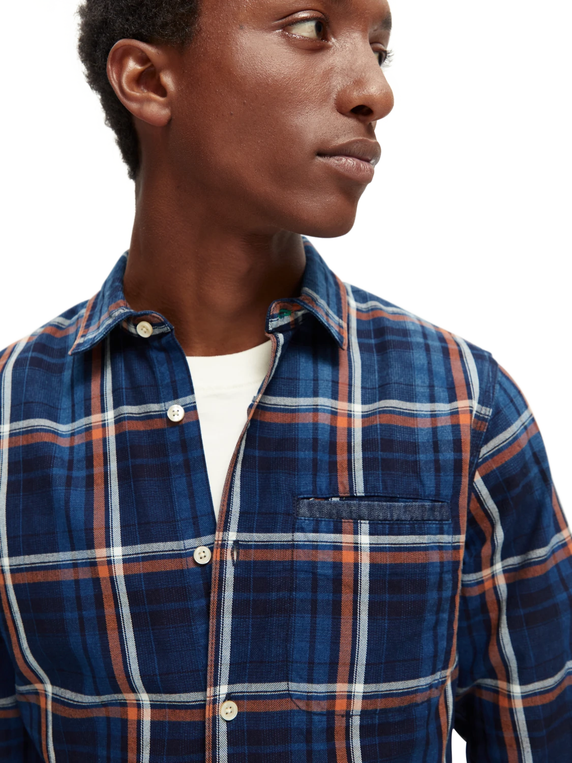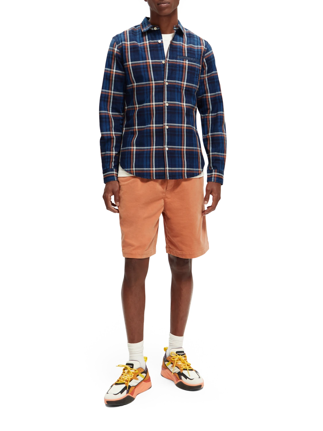 This shirt is yarn-dyed, highlighting a vivid blue colour pallet. Cut from a soft cotton, this slim-fit style is great for layering or wear on its’ own. Available in different colourways to suit your every look.