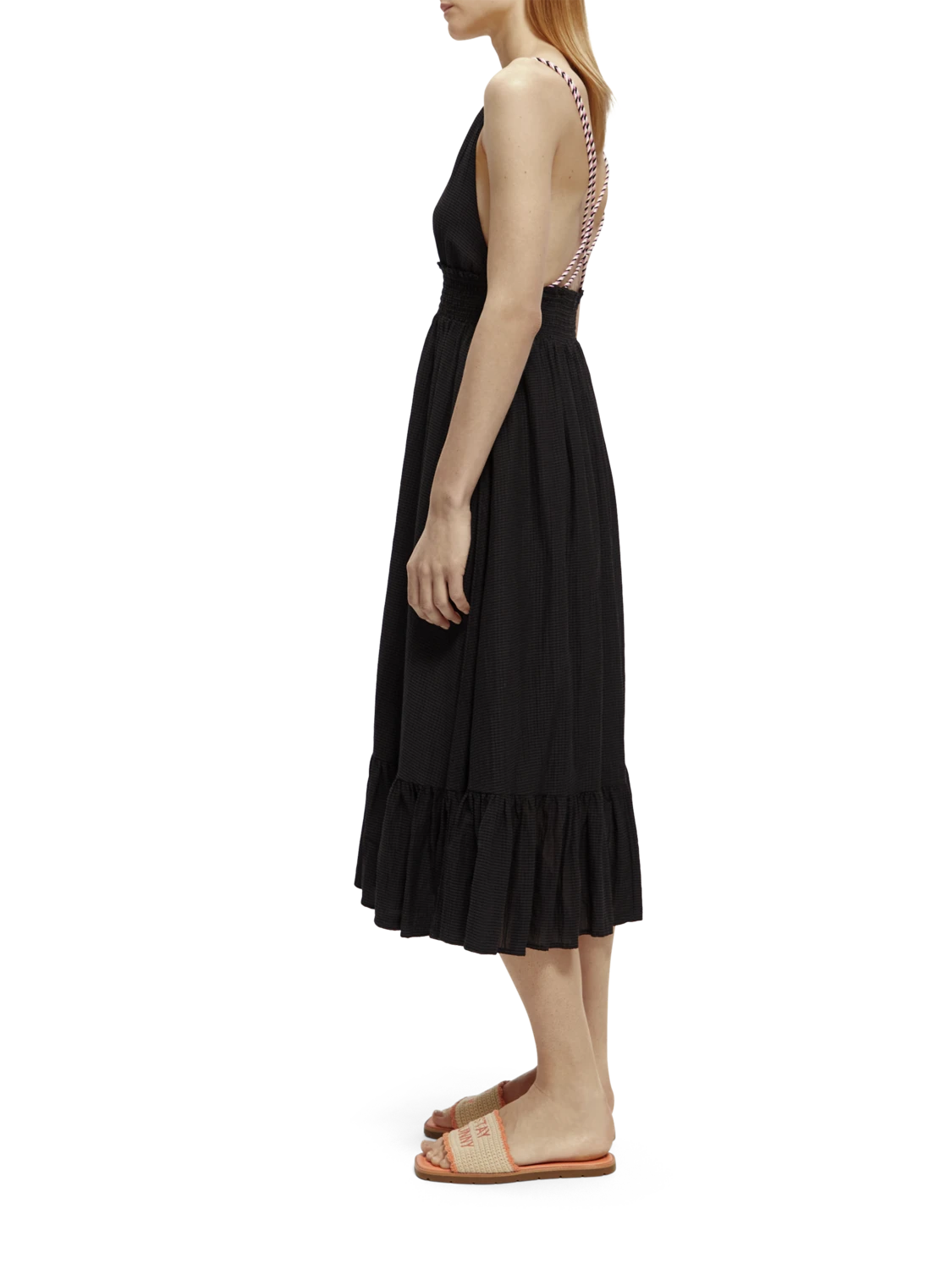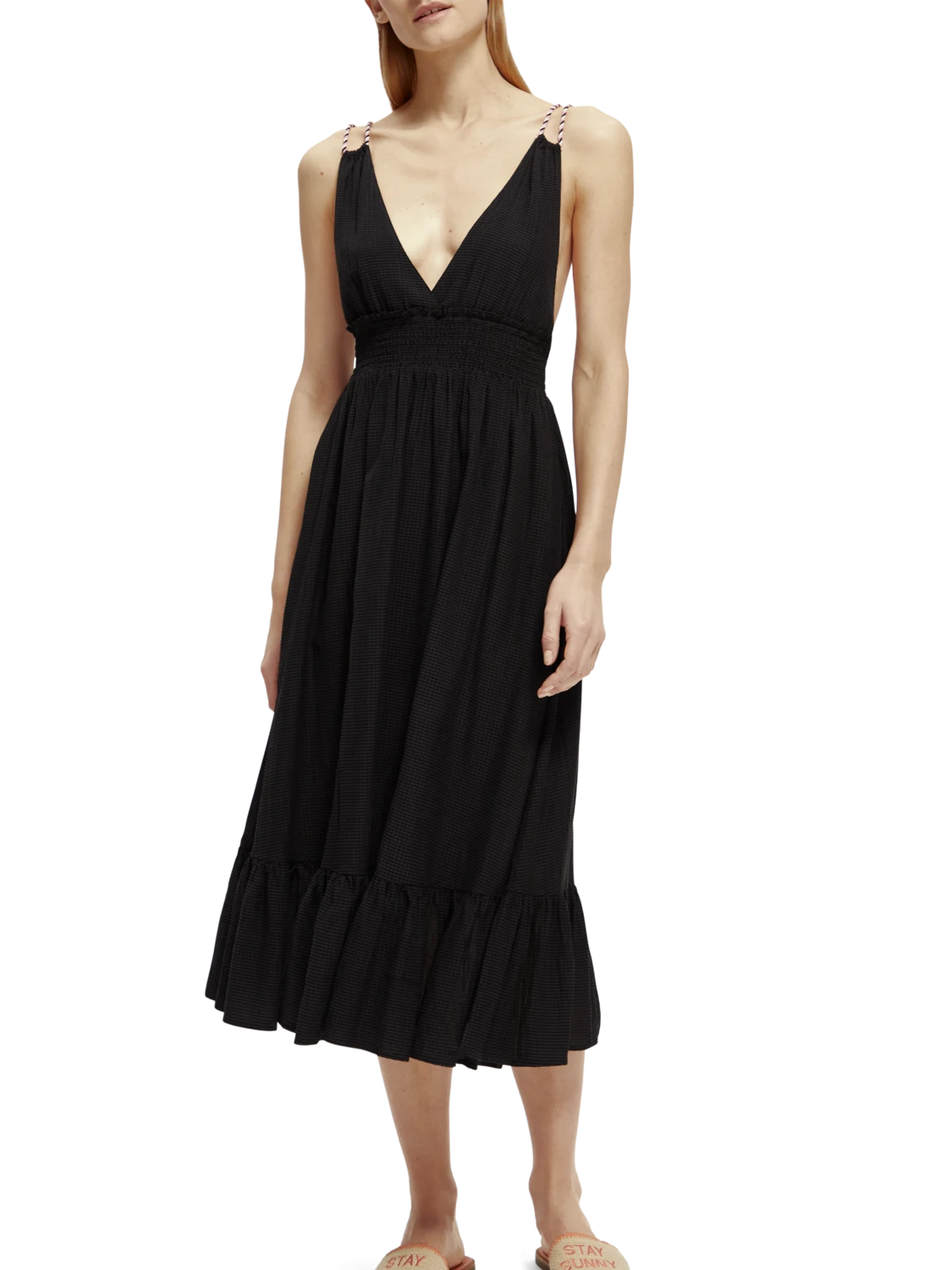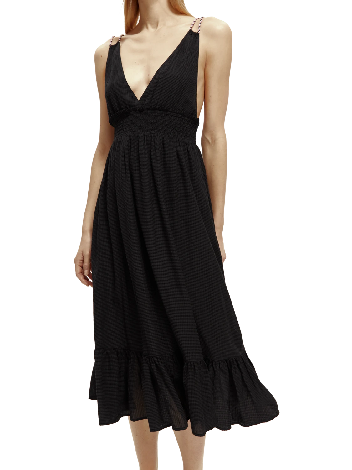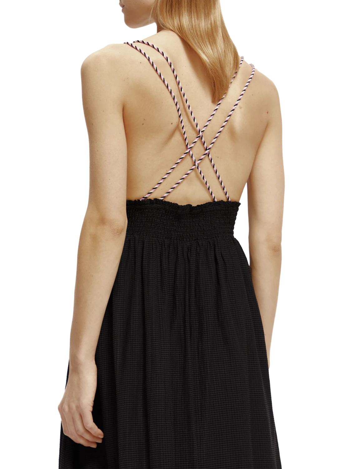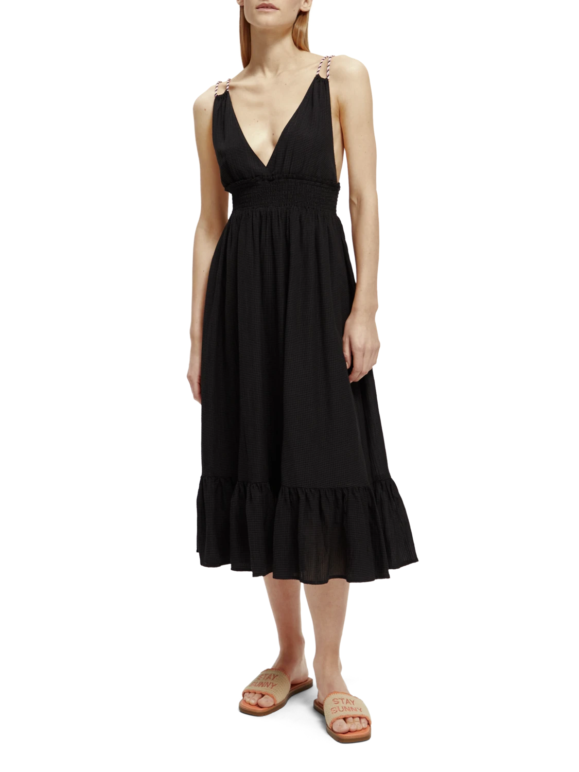 Striking an effortless balance of style and versatility – our midi strap dress is staple in any wardrobe. Featuring a two-strap design that cross on an open back, we’ve finished this dress with a tiered hem and smocked waist that remains comfortable – no matter the occasion.