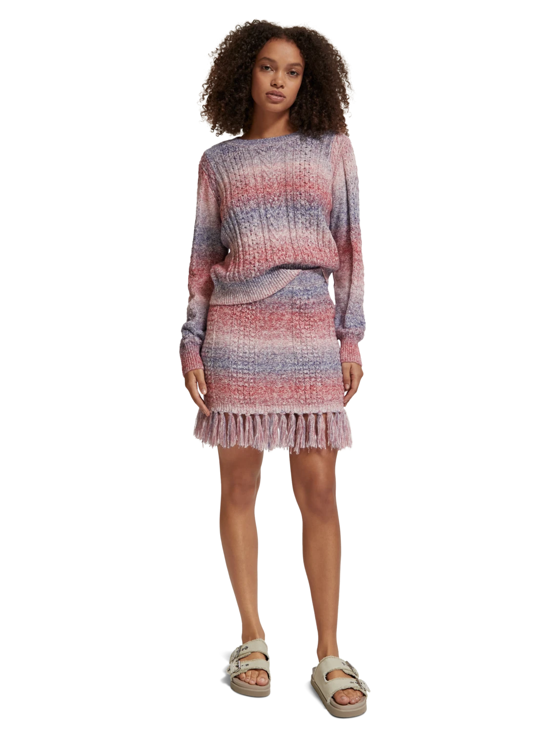 Elevate your wardrobe with our Space Dye Knitted Skirt. Its unique space dye pattern and cozy knit fabric make it a standout piece in any outfit. Express your individuality and embrace the joy of mixing textures and colors.