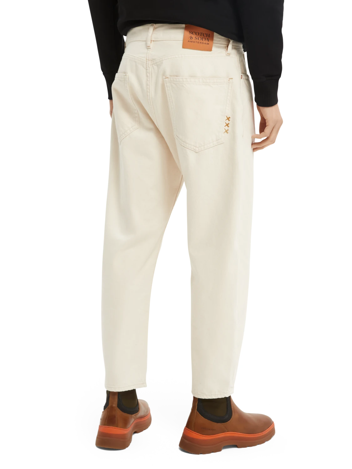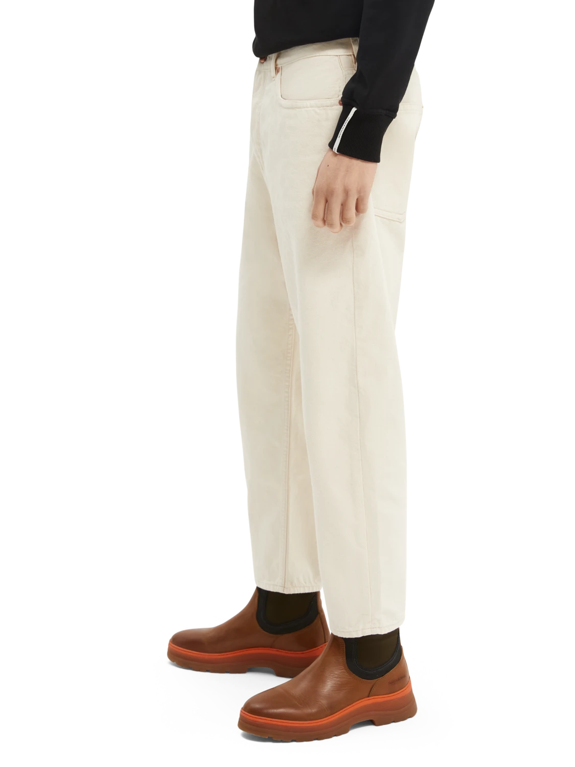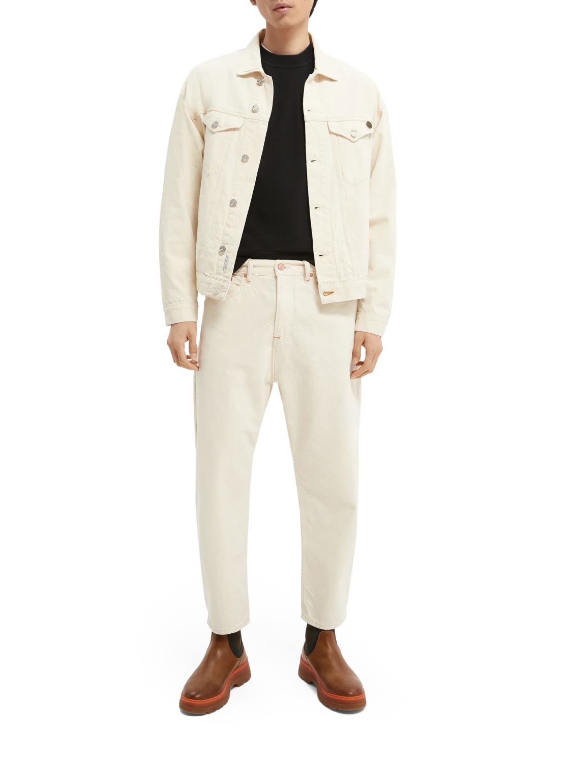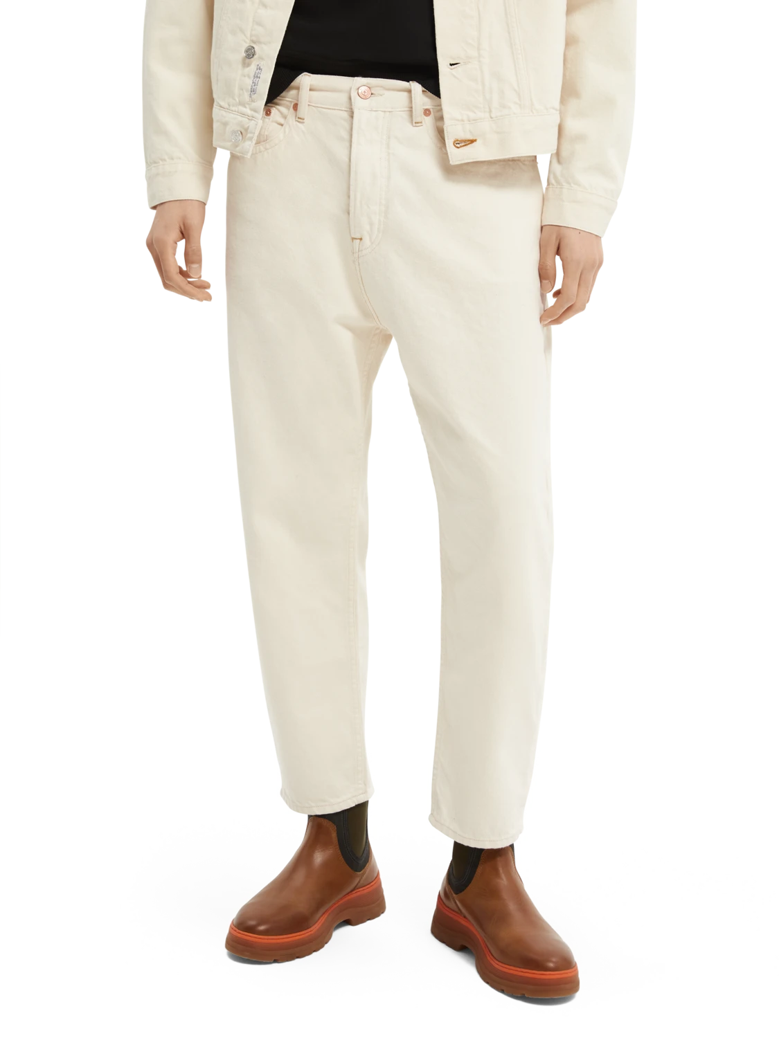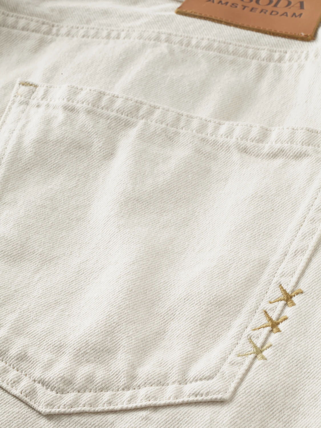 It’s all in the name. Picture yourself in these wide-legged trousers, constructed with a top-block and a high rise fit for comfort. A pair of trousers, purposely made from a washed ecru denim for a relaxed look.