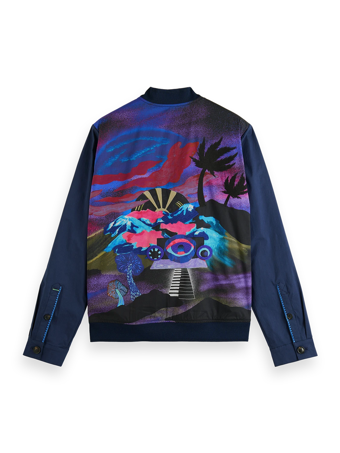 Scotch & Soda Stretch Poplin Bomber Jacket With Printed Back Panel