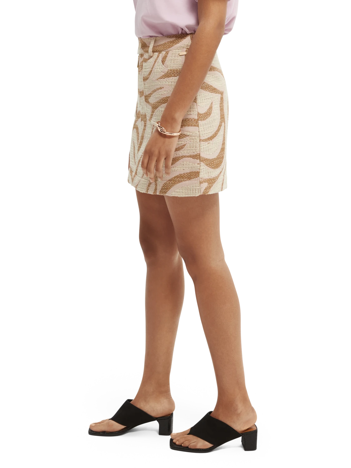With a vintage print and structured cut, this mini skirt is bound to become a season favourite.