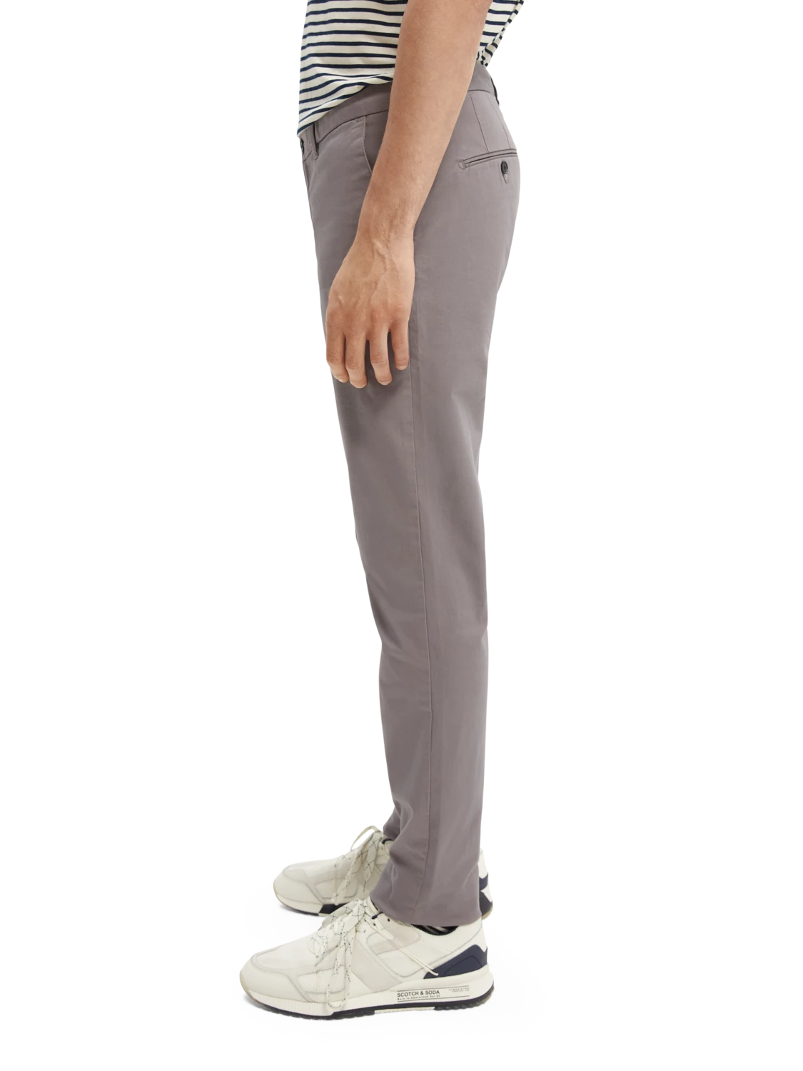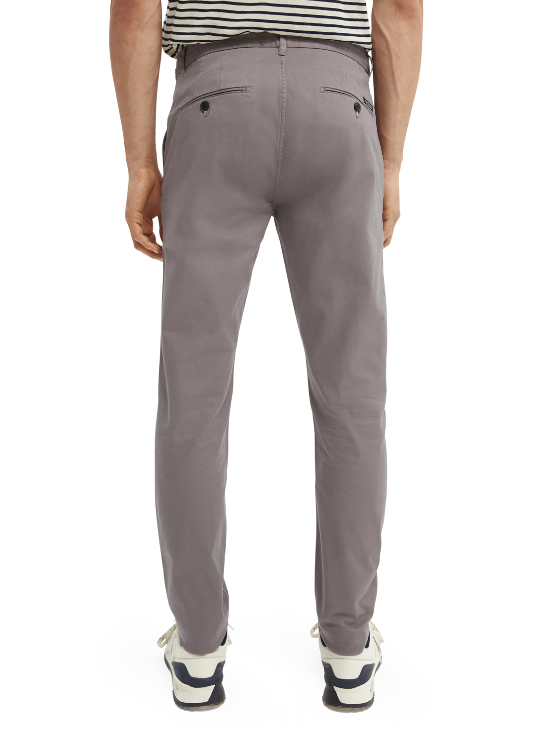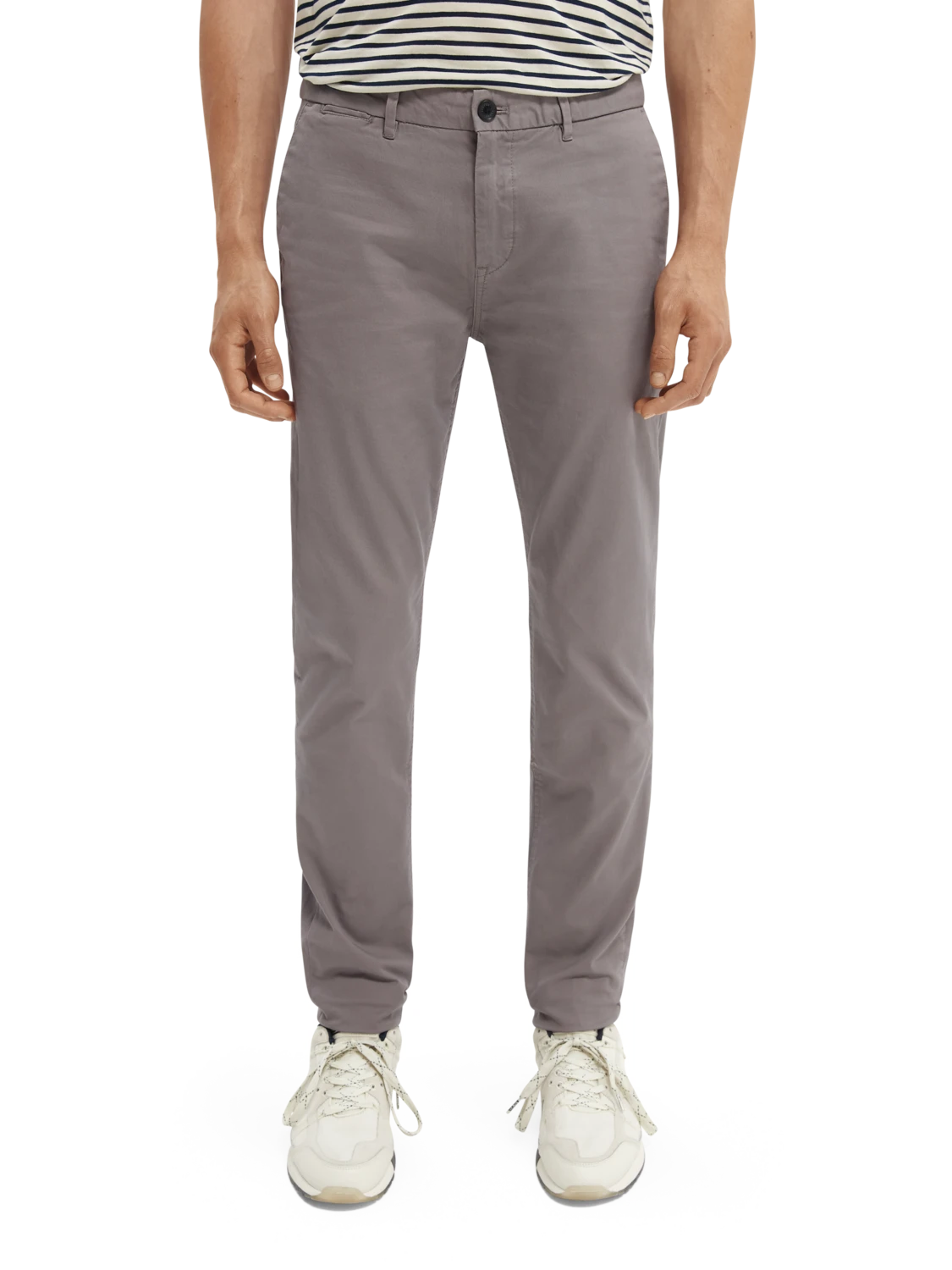 Available in a variety of warm hues, these classic chinos are crafted in stretch fabric and cut in regular slim fit. The trousers are designed with side pockets, back pockets, and a zip and button fly.