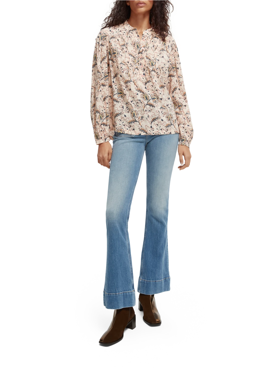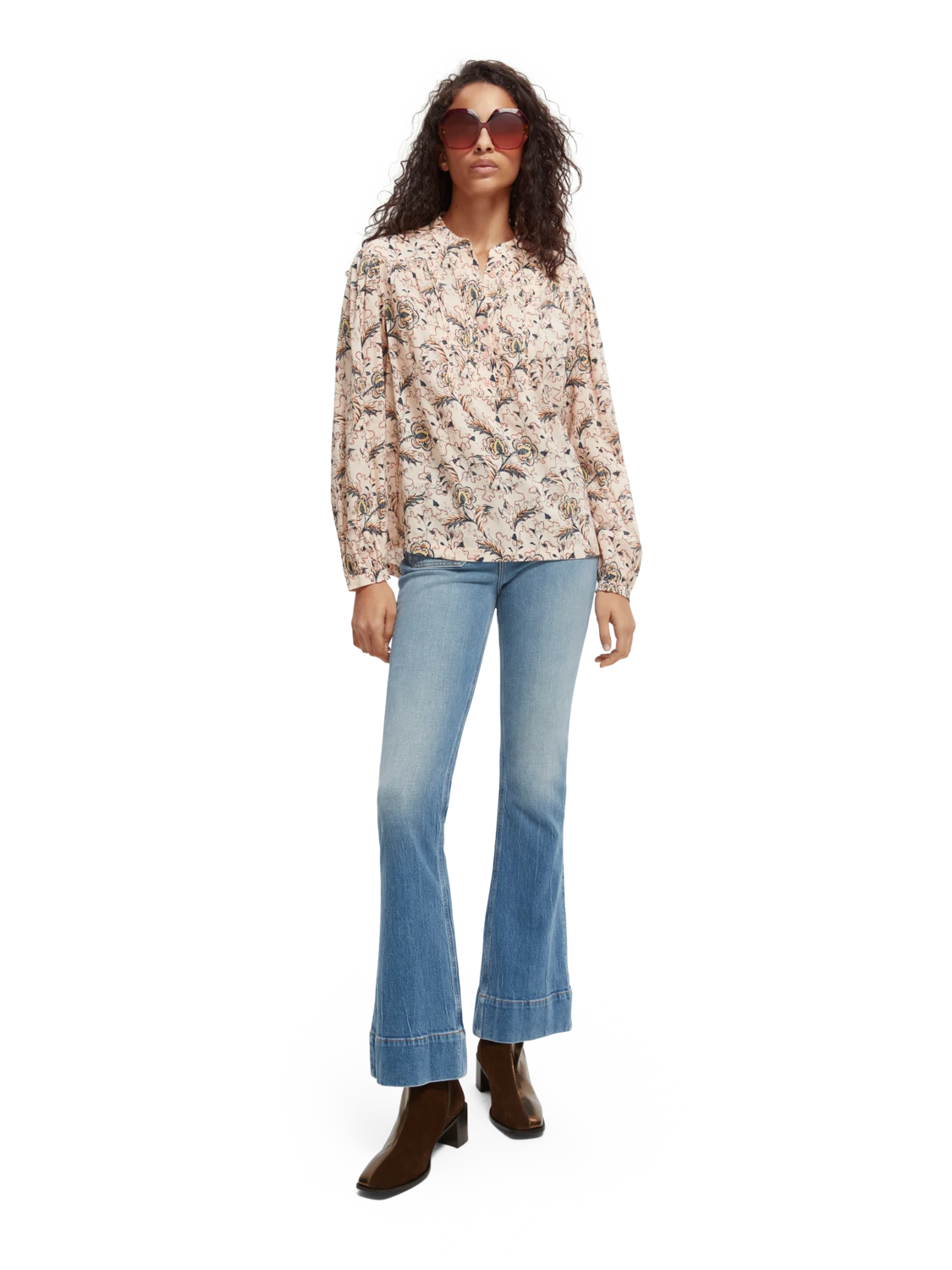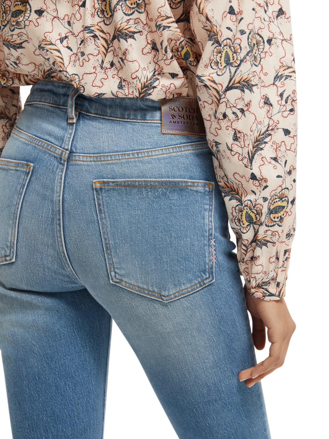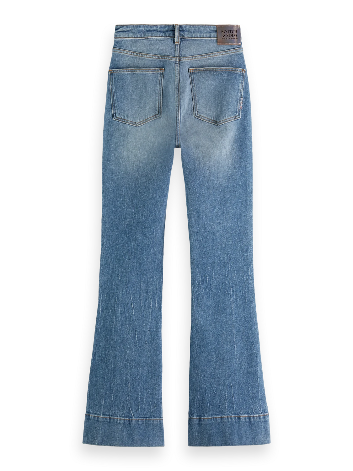 The Charm is our classic flare that comfortably sits high on the waist. The stretch denim is slim at the hips before kicking out at the calf, elongating the leg. Washed in a light blue tone, this style is finished with front patch pockets, a full-length inseam, and zip fly.