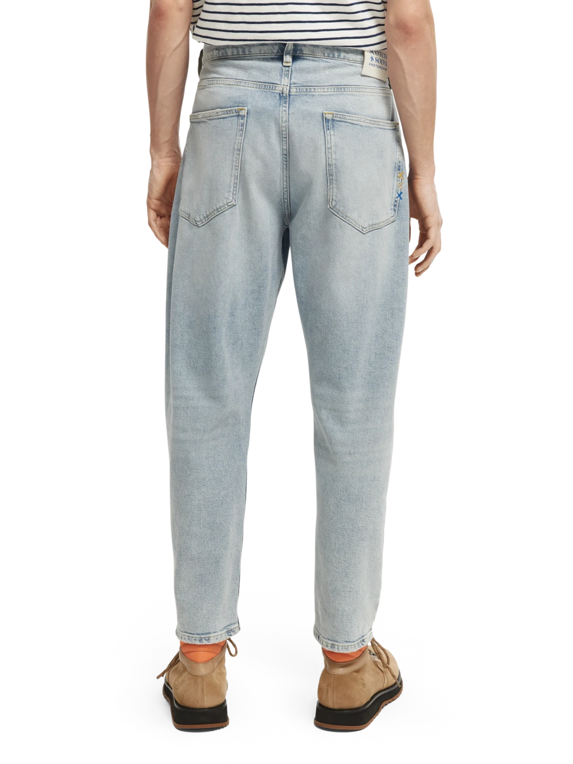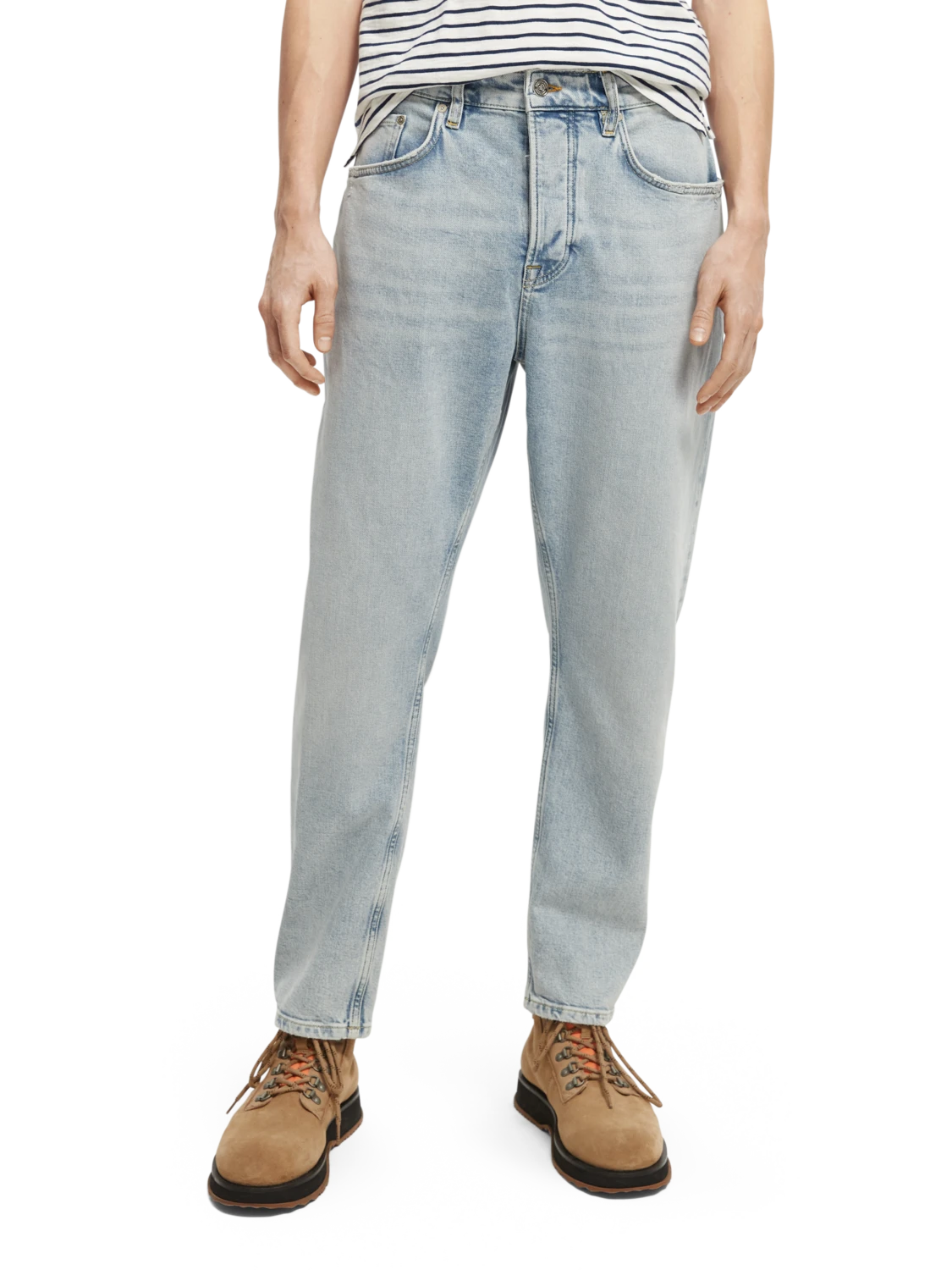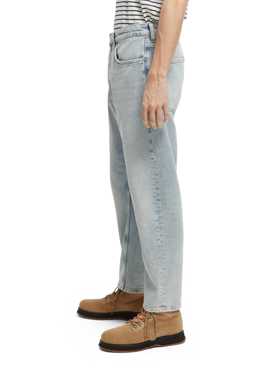 The Dean is our loose tapered-fit jean – with a wide-leg from hip to thigh that transitions into a more tailored ankle. Washed in our light Blue Splash tone, this relaxed style is finished with large back pockets and a button fly.