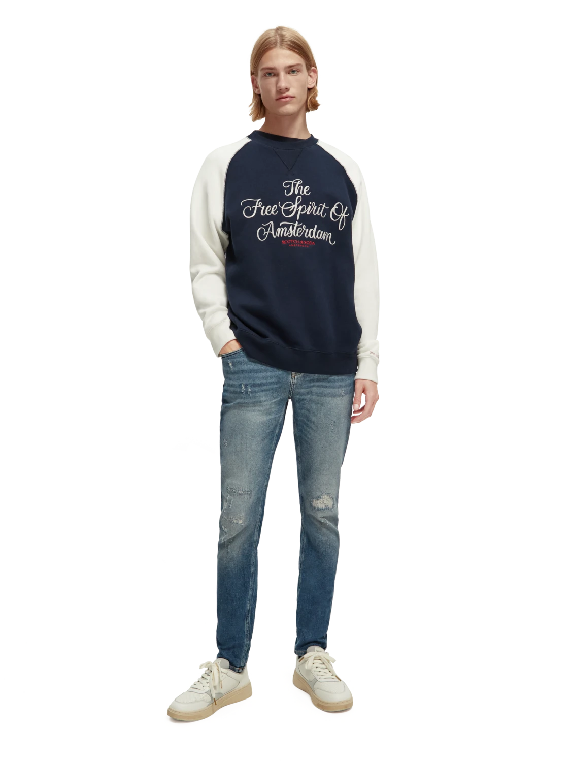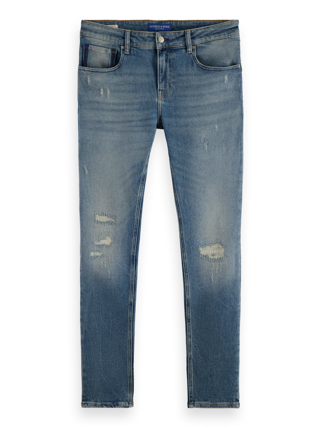 Cut super-slim, the Skim is form-fitting from waist to ankle. An infusion of elastane makes this skinny style comfortable throughout the day. Washed in our light Broke Blauw tone with distressed accents and finished with special coin rivet detailing and a zip fly.