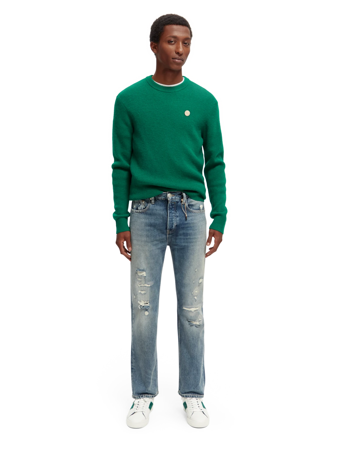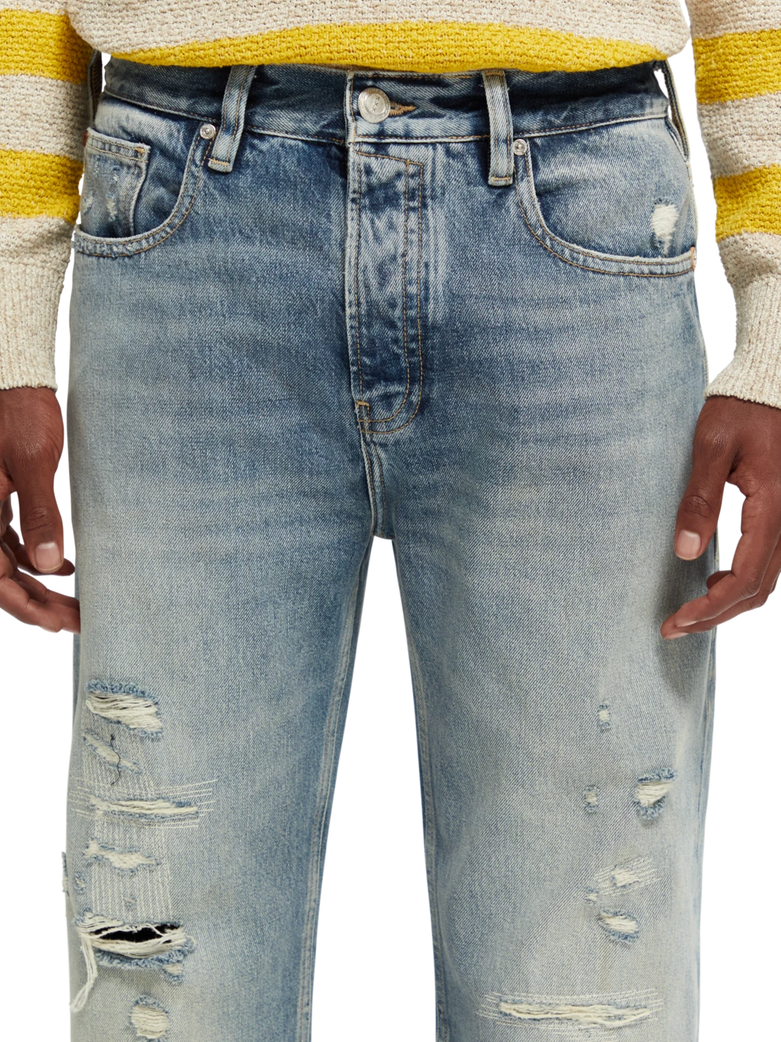 The Vert is our straight leg jean, with a mid-rise and regular length. Complete with five-pocket styling and detailed with distressed and wear accents.