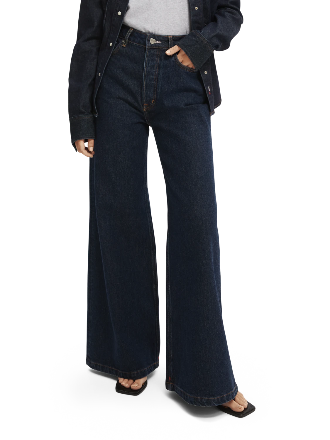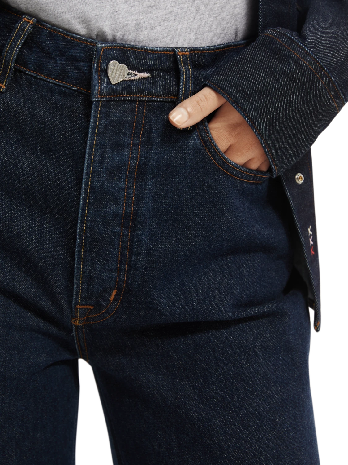 Let’s catch some waves. This seasonal high rise wide-leg denim is made in a beautiful ecru non-stretch fabric. Featuring the Elvis embroidery on the back pocket and specially developed trims, it’s everything you need to look awesome while you dance. Or while you stand. Complete the look with the Elvis trucker jacket. Made with organic cotton: non-GMO seeds are grown on land free from pesticides and synthetic fertilisers, lower water use, and farmed using crop rotation which is better for soil health.