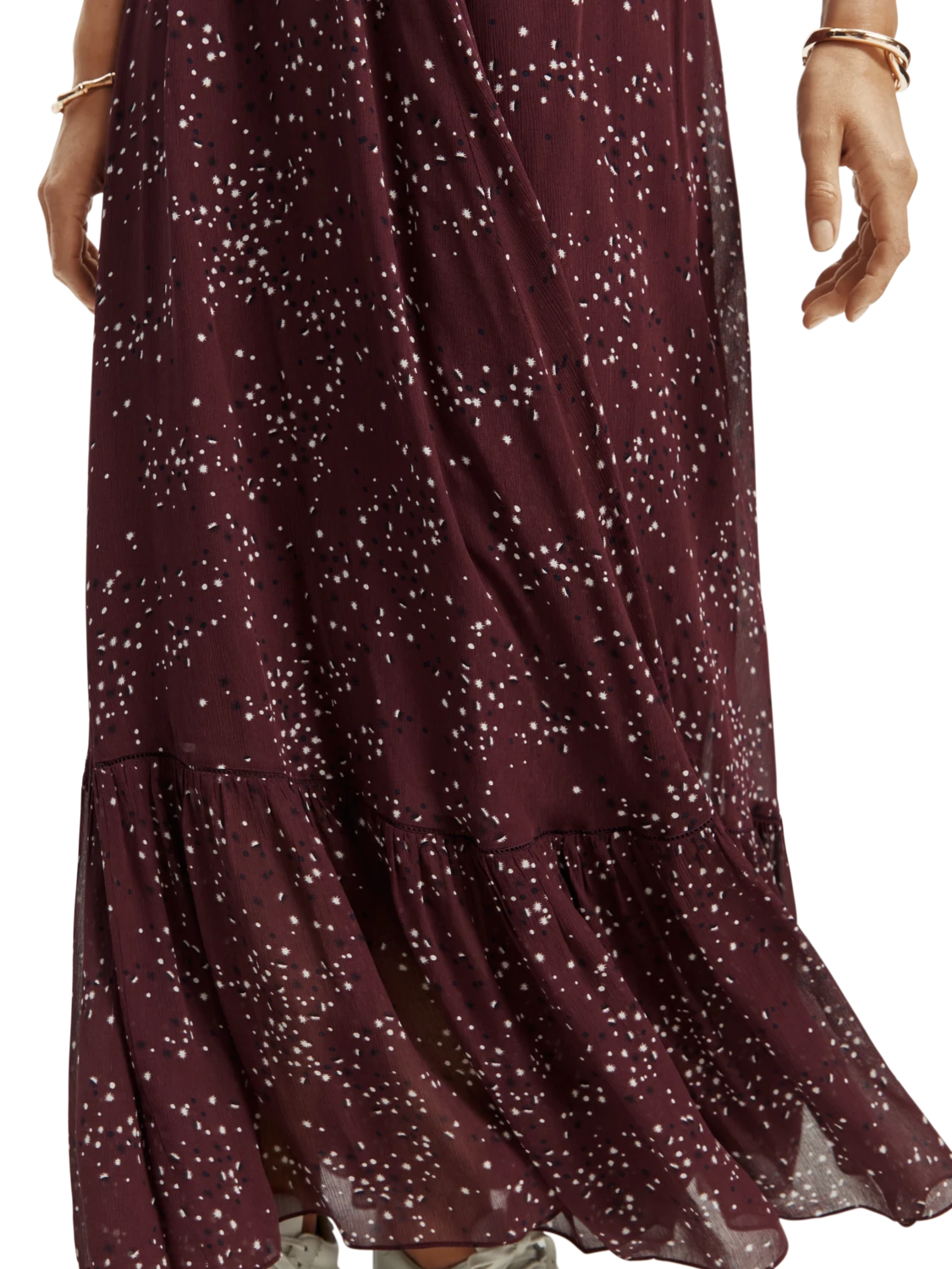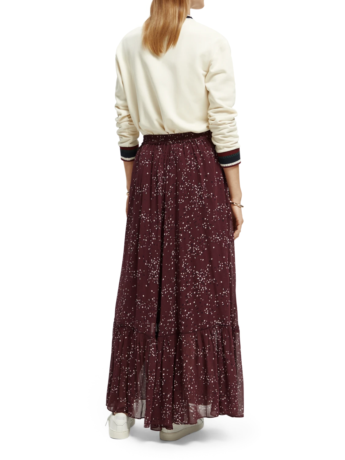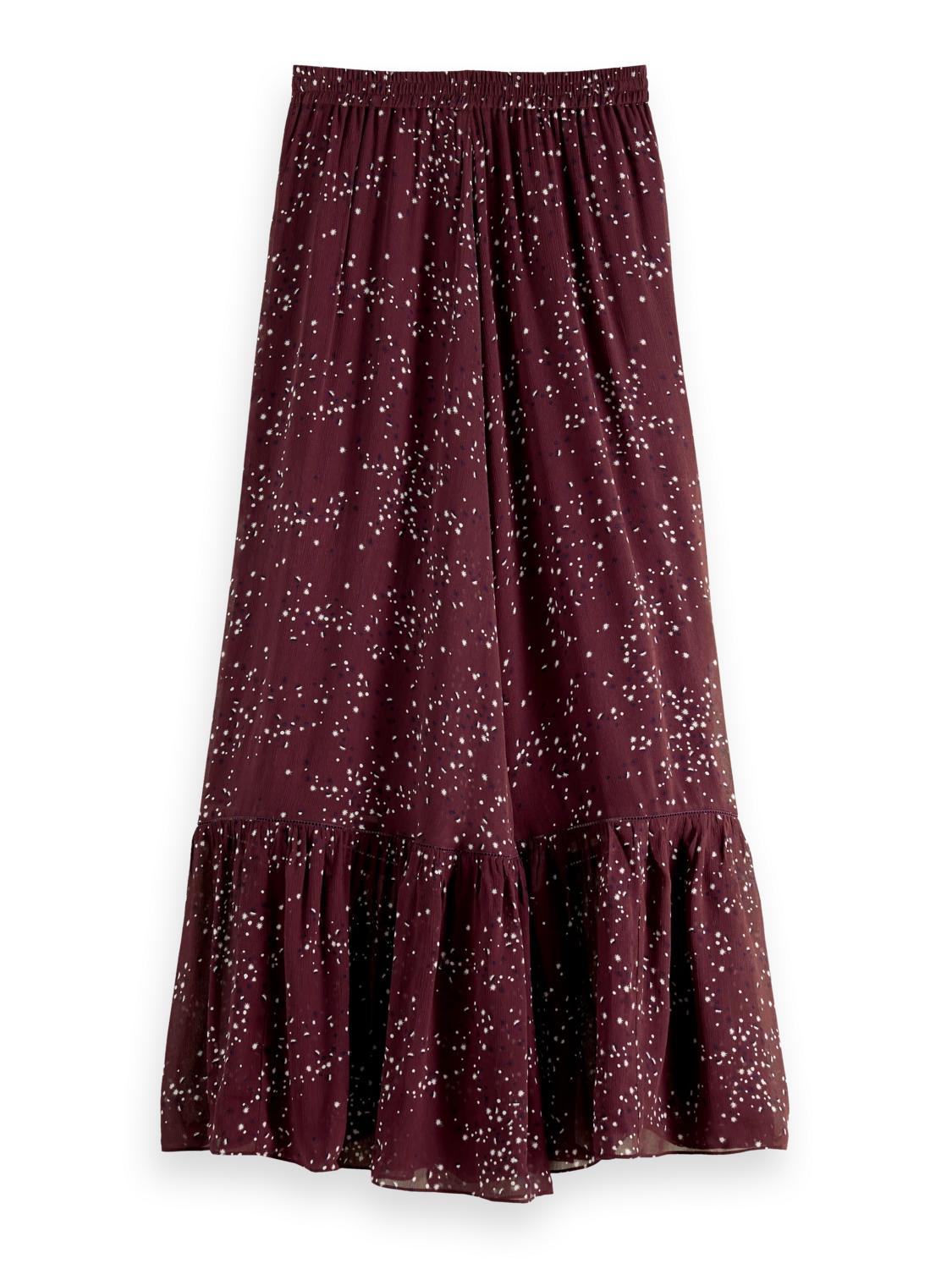 This maxi length skirt comes in a soft chiffon, adorned with an eye-catching print. Finished with a single tier with gathering details giving an added dimension to this versatile style.